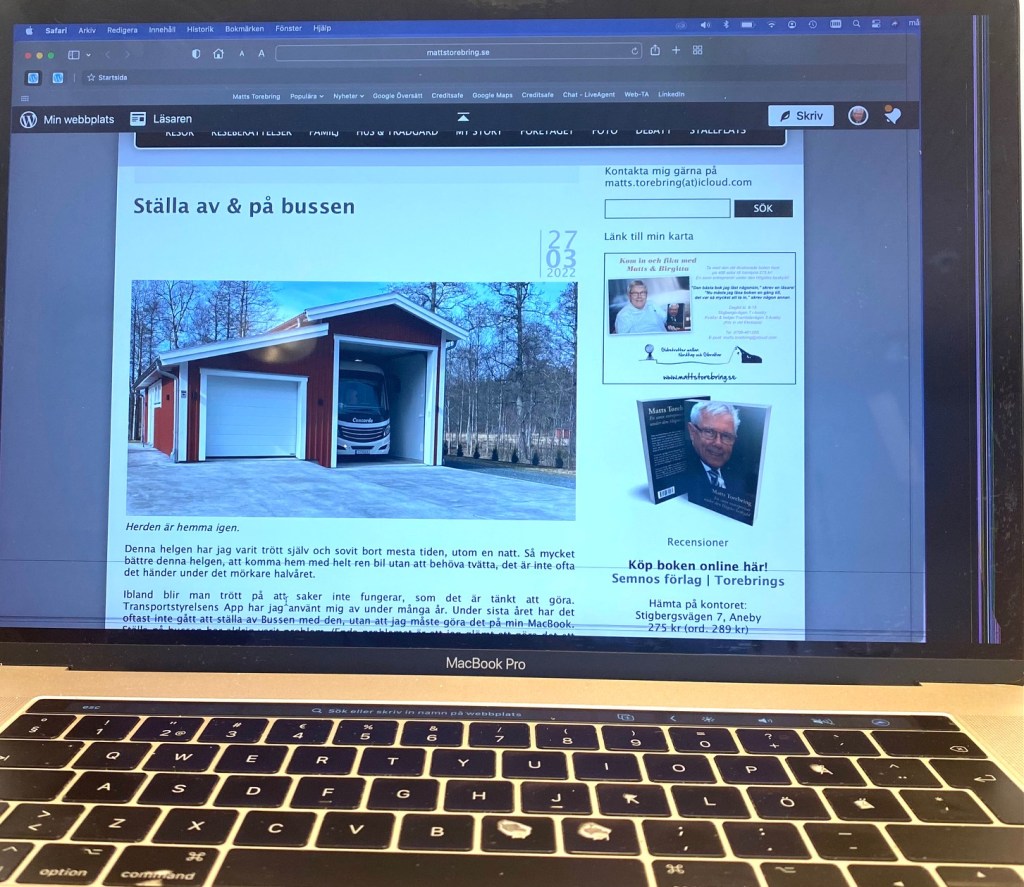 Det har blivit några glas under de snart två åren som vi bott här, som gått förgängelsen till mötes, när de har tappats i golvet. Inte nog med detta, en av barnbarnens mobiler och en iPad har gått samma öde till mötes. Igår hade jag missat att dra igen dragkedjan på min dataväska och min MacBook gled ur och ned i golvet. Ja ni ser strecken till höger i bildskärmen samt några i underkanten. I morgon blir den inlagd och det blir spännande att se om det går att reparera den. Jag skriver på den in afton, men i morgon hoppas jag den är i goda händer. Jag även slitit ut flera tangenter …