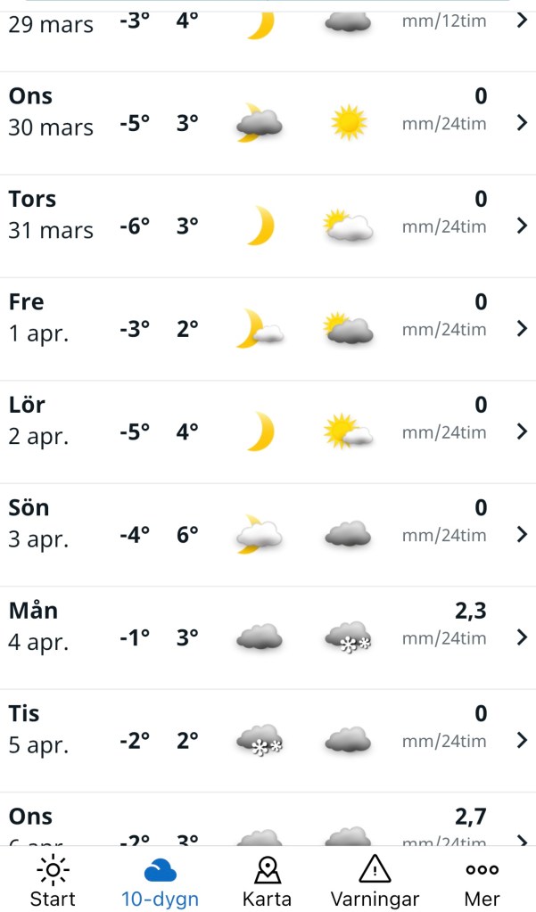 Lycka till med blommorna och kollade lite framåt men säger inget om vädret🥴🌨️🌧️nu heller😌