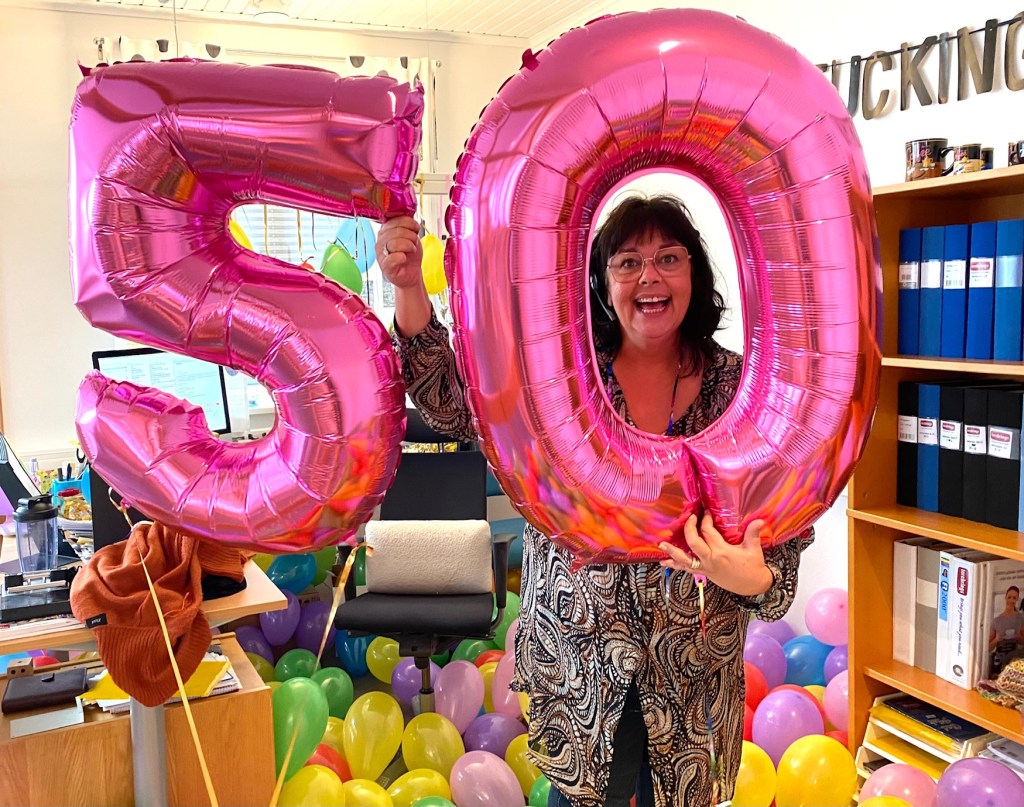 Vår sonhustru Carina, en stolt 50 åring har landat på sitt kontor på Torebrings.