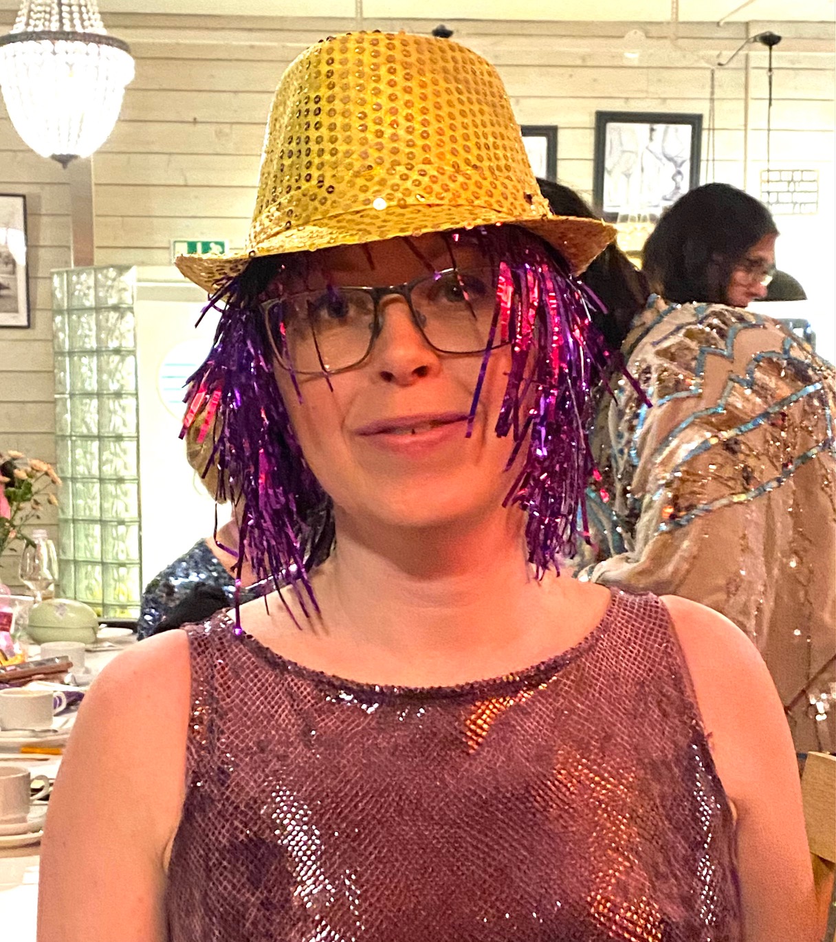 Gästerna uppmanades att ha Melloklädsel! Carina är fanatisk Melodifestival anhängare, medan jag själv alltid har sagt: ”Väck mig när det är över!”