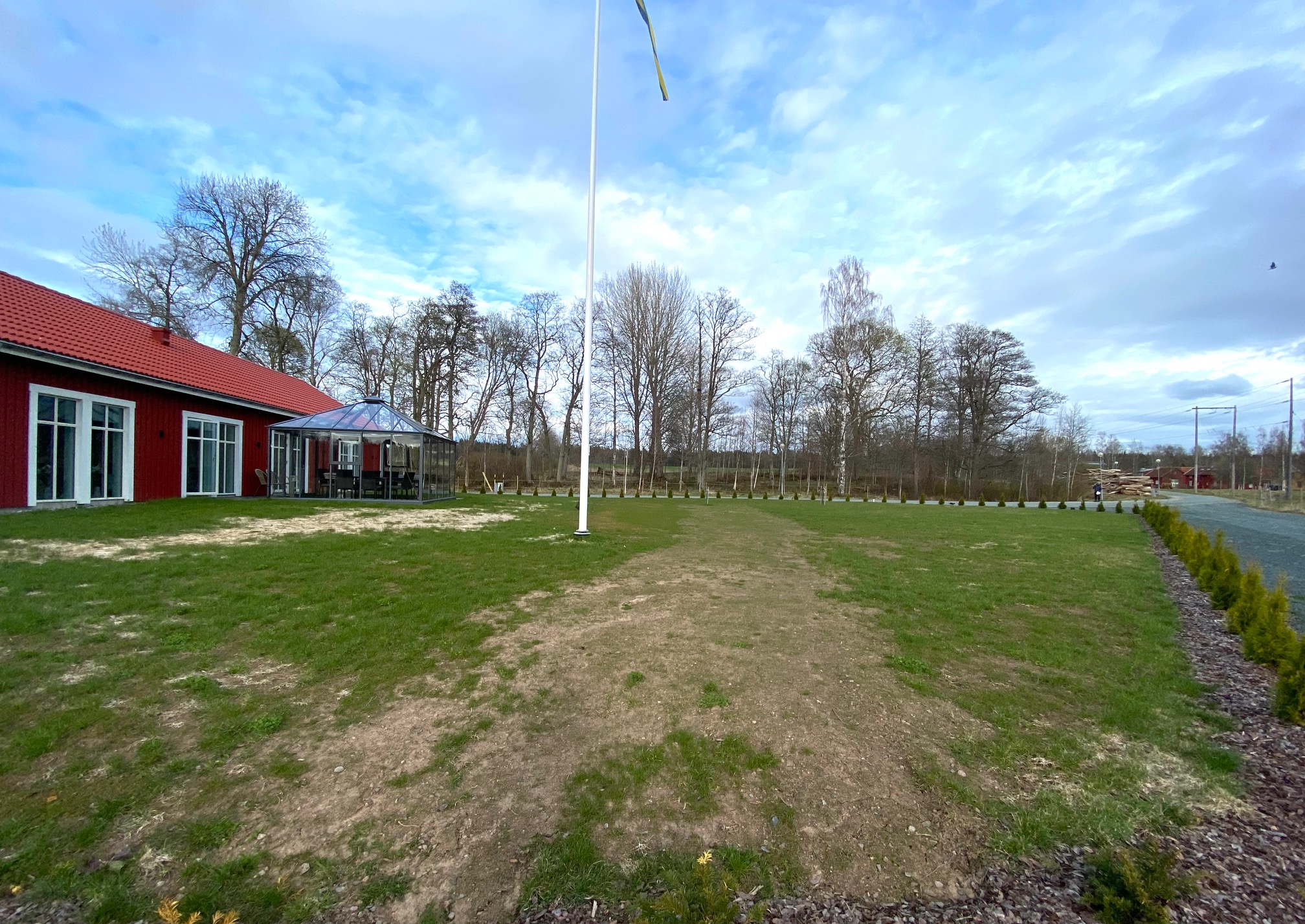 Vår markentreprenör gjorde ett mycket bra anläggningsarbete, dock inte gräsmattan, den blev helt misslyckad. Två gånger har de varit tillbaka, men jag har ändå inte varit riktigt nöjd. Nu orkade jag inte klaga mera, jag köpte hem ny matjord själv och en trädgårdsmästare skall göra sista jobbet.