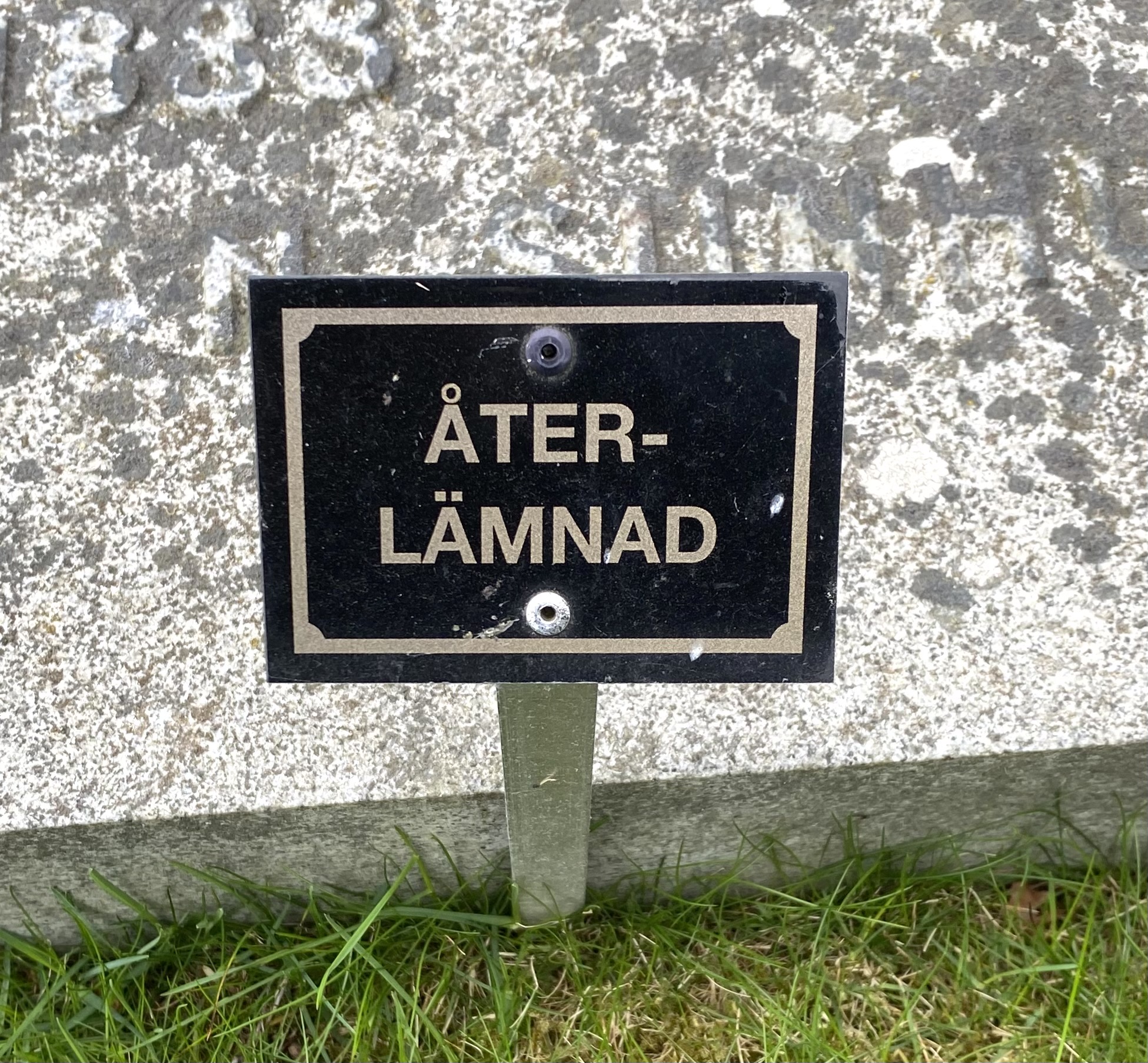 Idag var det dags att byta ut de överblommade påskliljorna, på våra gravvårdar som vi sköter. Här vilar Birgittas farmor & farfar. Denna skylten finns vid många äldre gravvårdar. Jag har dock aldrig reflekterat över texten på skylten. Vid begravning läser officianten orden: ”Av jord är du kommen och jord skall du åter vara.” Birgittas pappa lyfte på hatten vid begravningen av sin äldste son, dock bara i 30 års åldern och sa: ”Tack för att vi fick ha dig så länge.” Vi lever ett liv på lån, Birgittas farmor och farfar är återlämnade.