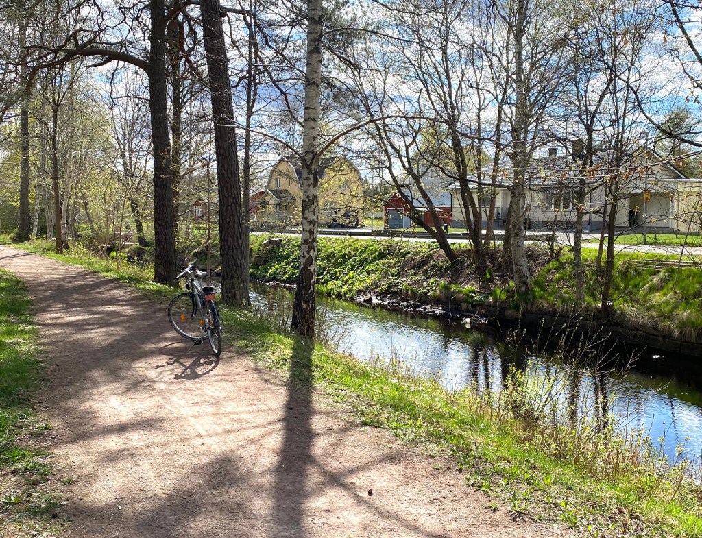 Både Birgitta och jag, tog på oss våra sommarjackor på morgonen och gick ut, men båda gick vi in och bytte till en varmare jacka. Jag tål inte heller att gå ute i kyla, utan att ha en luva på mig, eller att inte ha något under under cykelhjälmen. Jag kom inte lång bit på hemvägen, trots att termometern visade 18 grader varmt, förrän jag stannade och tog på en luva. Så här vacker cykelväg vi har till jobbet just nu. Jag har skrivit det tidigare, citatet ur gamla Bondepraktikan: ”Maj kall, fyller bondens lada all.” Fast ska det bli riktigt bra nu behövs det regn också.