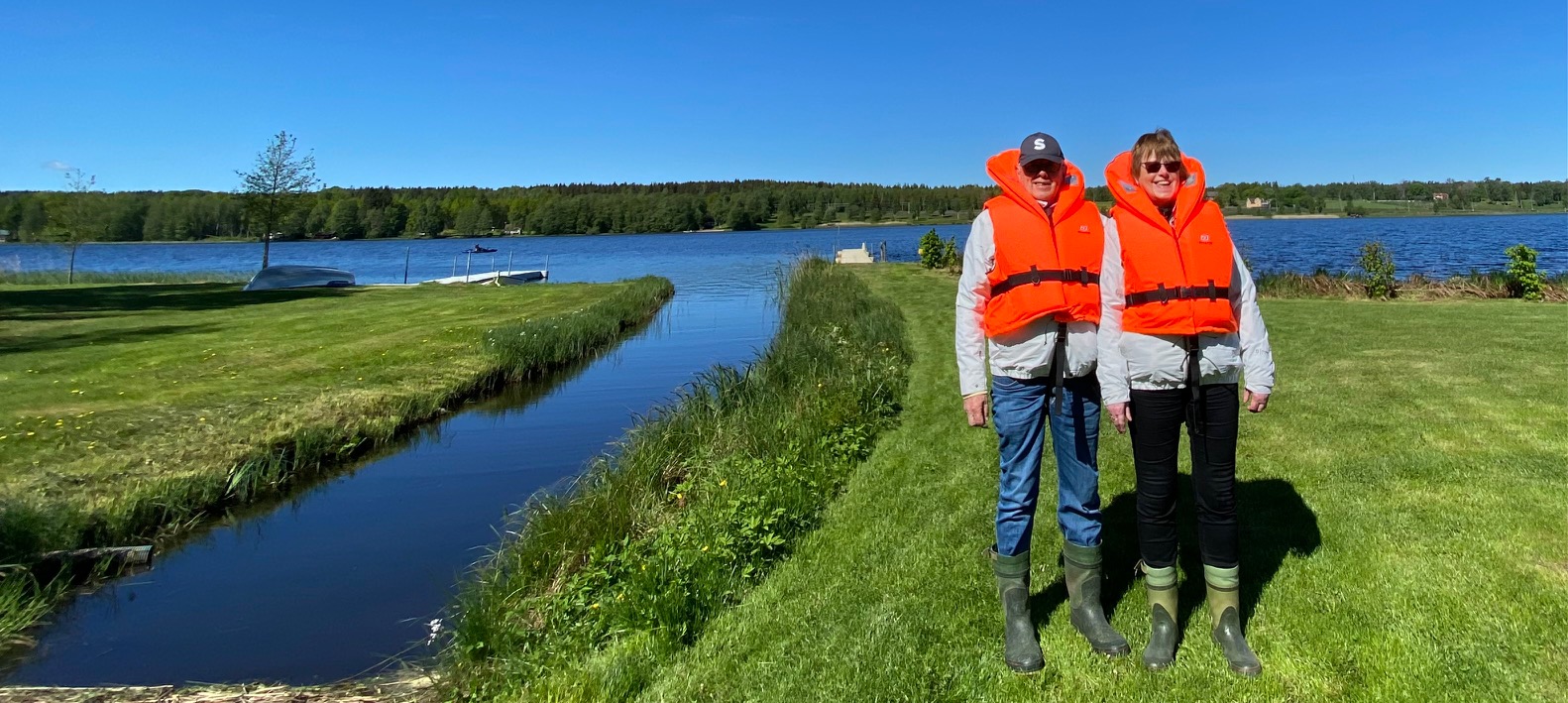 Niklas & Linus kom och bjöd oss på en båttur runt hela Anebysjön. Det har vi aldrig varit med om tidigare.