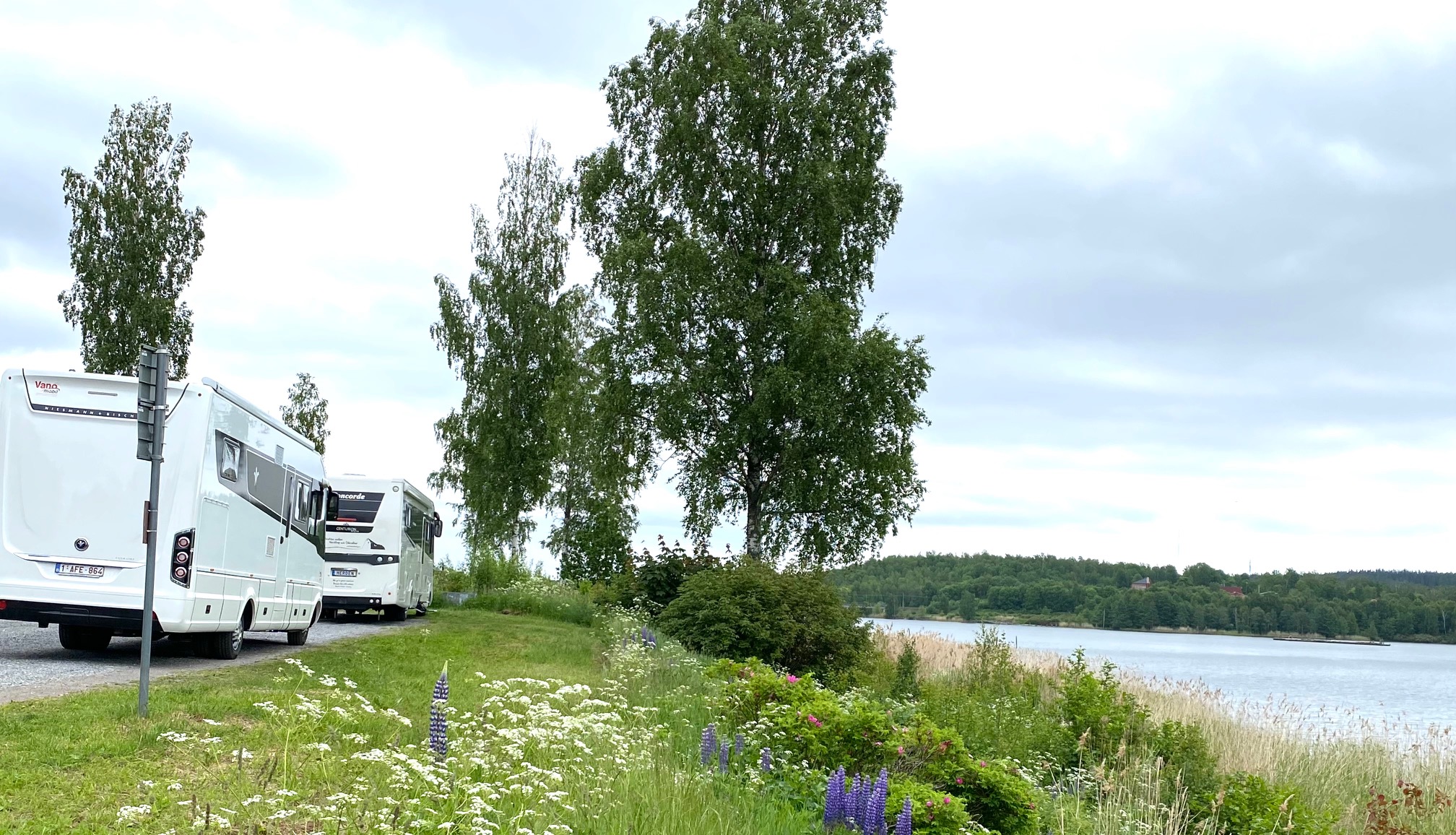 Bara det att vi husbilar finns med i planeringen hos kommunerna och välkomnar oss att parkera på olika ställen känns bra. Att dessutom få parkera gratis, så lugnt och vackert som här, är en förmån. Av alla drygt 10 talet övernattande denna gången är 90 % tyskar. Så var det i Hult också.
