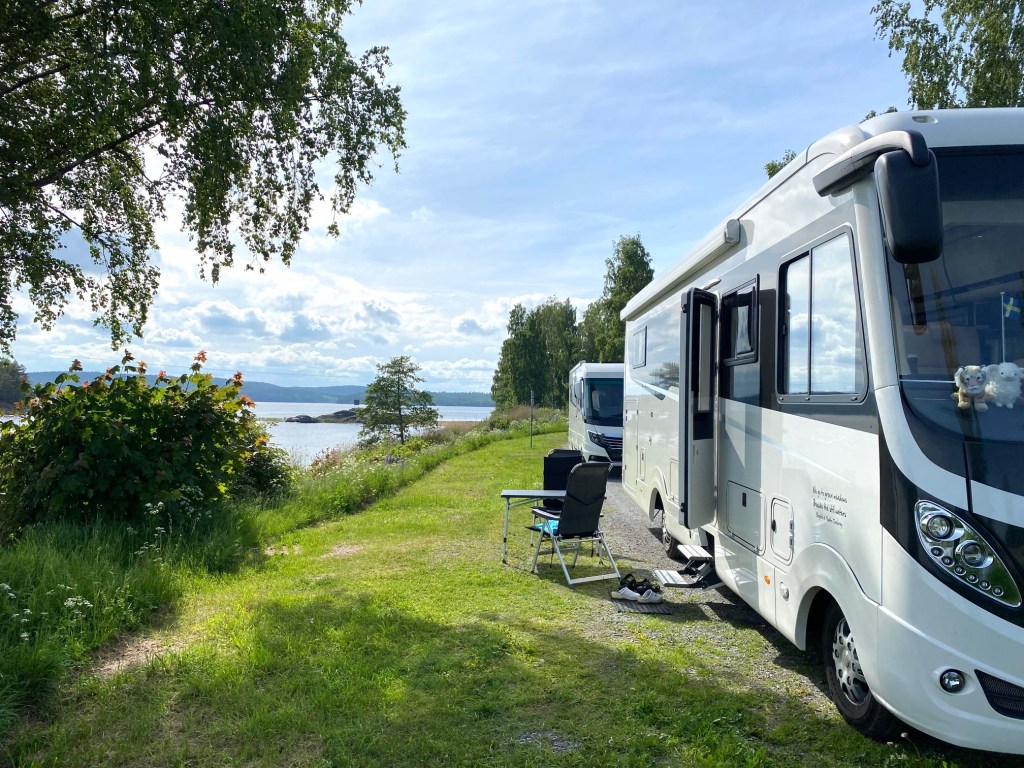 Dagens etappmål var Slottsbrons ställplats strax intill Grums. Här finns upp till ett 10 tal gratis ställplatser. Helt Fantastiskt! ”Nå´n däruppe måste gilla oss …” Detta är 3:e platsen i rad som är rena lyckokastet.