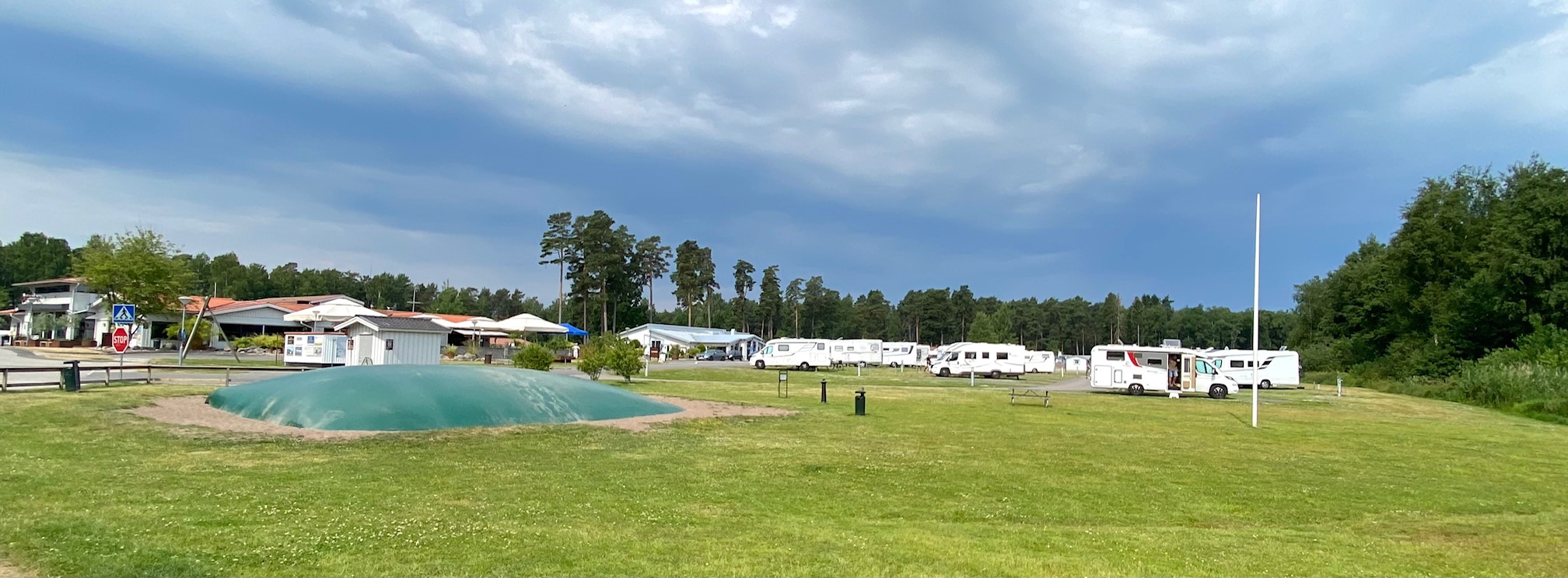 Det är just Husbilslandet, här inne på campingen för oss med husbil, som gör det så trivsamt. Parkering på asfalt och grönt gräs utanför dörren, samt stora rymliga platser.