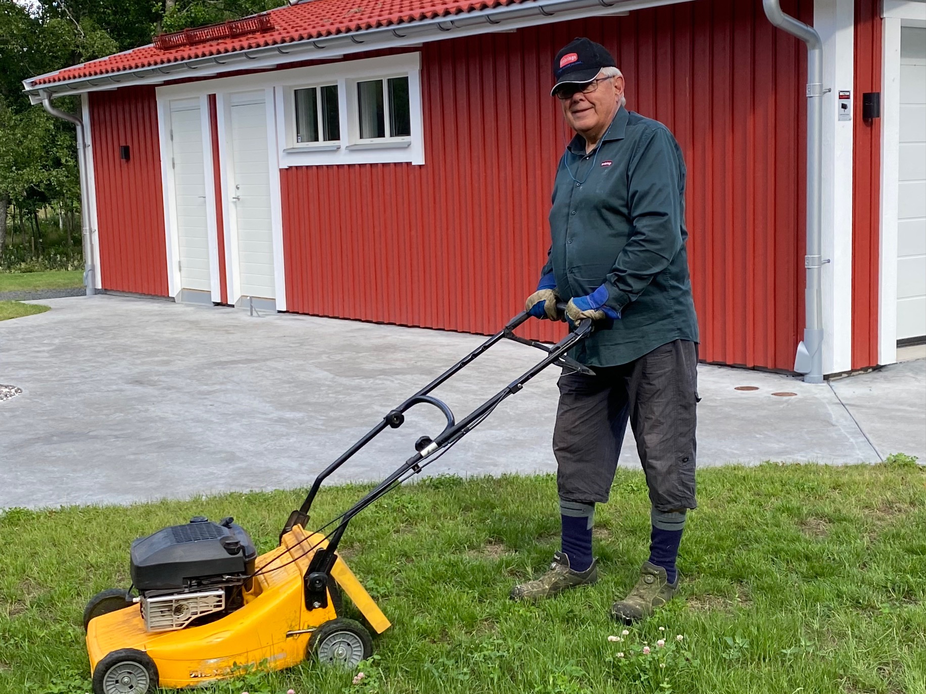 Vi har sagt till varandra flera gånger under dagen, att det är bättre att vara hemma denna tiden, om än så för att bara klippa gräsmattan. Vi har det så bra hemma. ”Toreman” har haft ledigt nu i åtta veckor, på grund av att de nysådda delarna i gräsmattan inte får klippas med en automower.