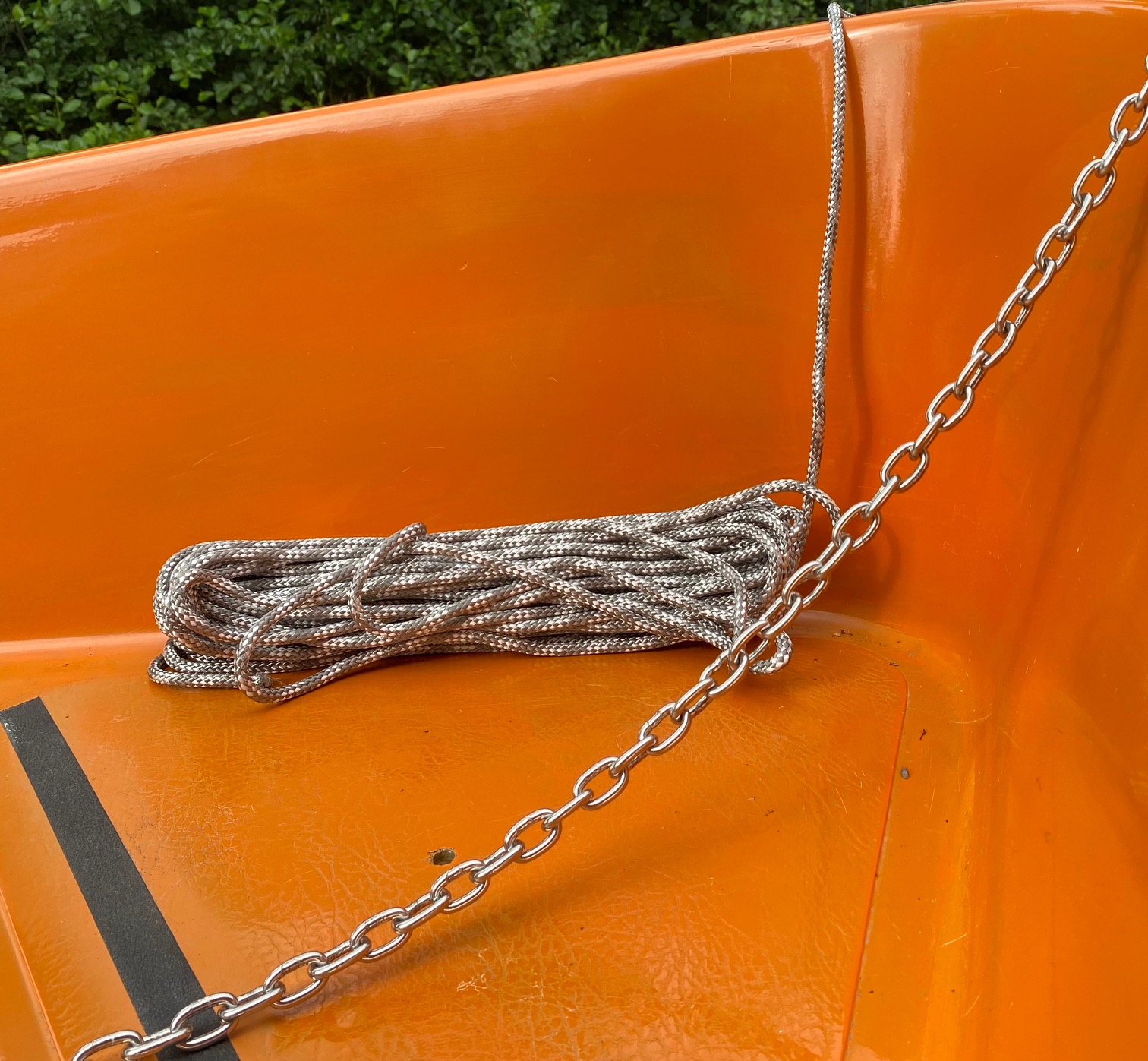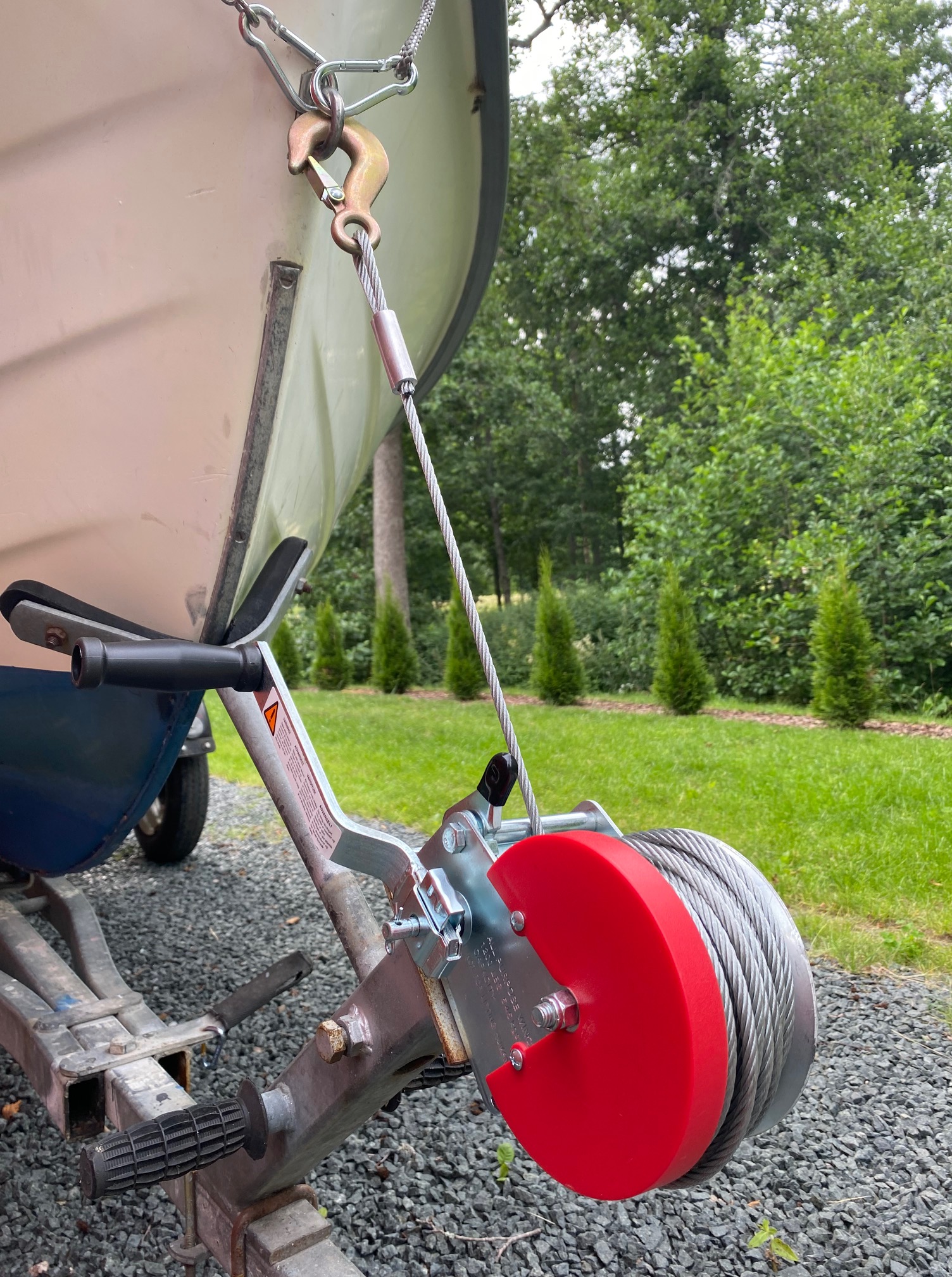 Tidigare under åren har jag köpt kraftiga spännband och förankring till markisen på husbilen. Som nybliven båtägare hittar jag allt jag behöver på Biltema. T. ex. bandet till vinschen såg lite svajigt ut. Ett nytt band kostade 109 kr, en helt ny vinsch med 15 meter stålwire, ett par hundra kronor mera. Inget svårt val.