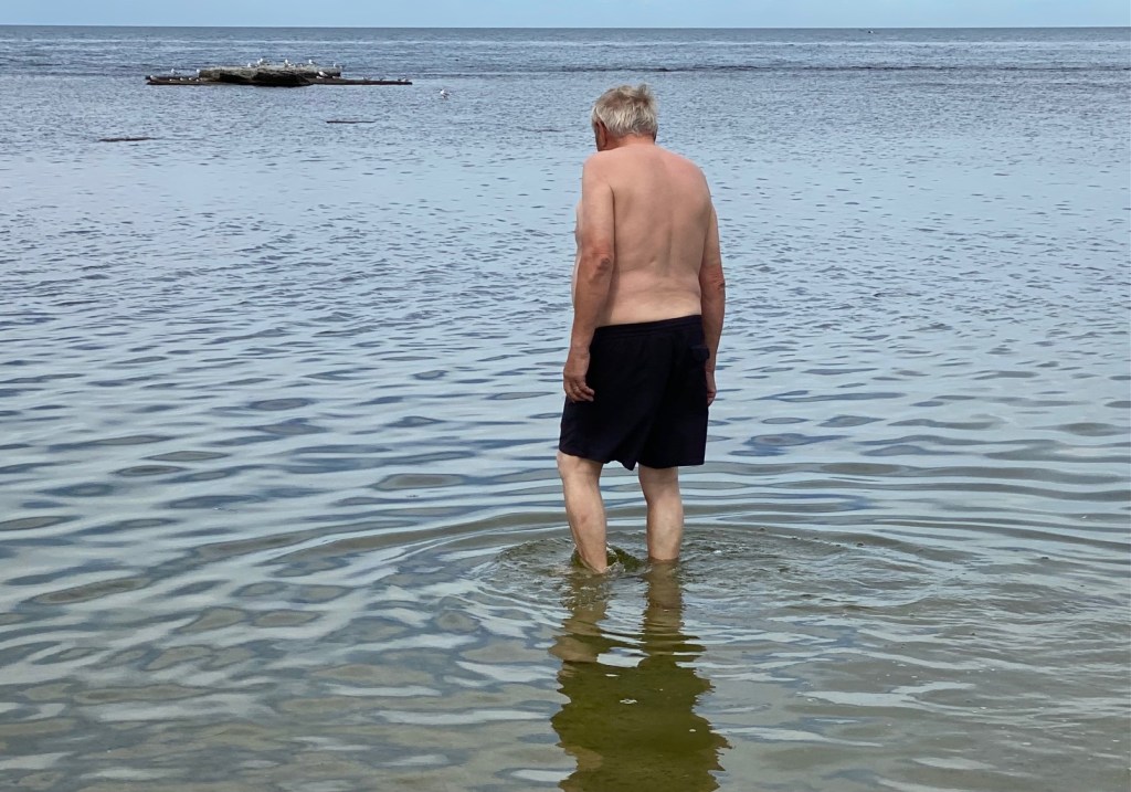 Jag gick i för att doppa mig, men tyvärr fick jag gå så långt ut att det blev stenigt. Jag lade mig på botten i alla fall så att jag blev blöt hela jag.