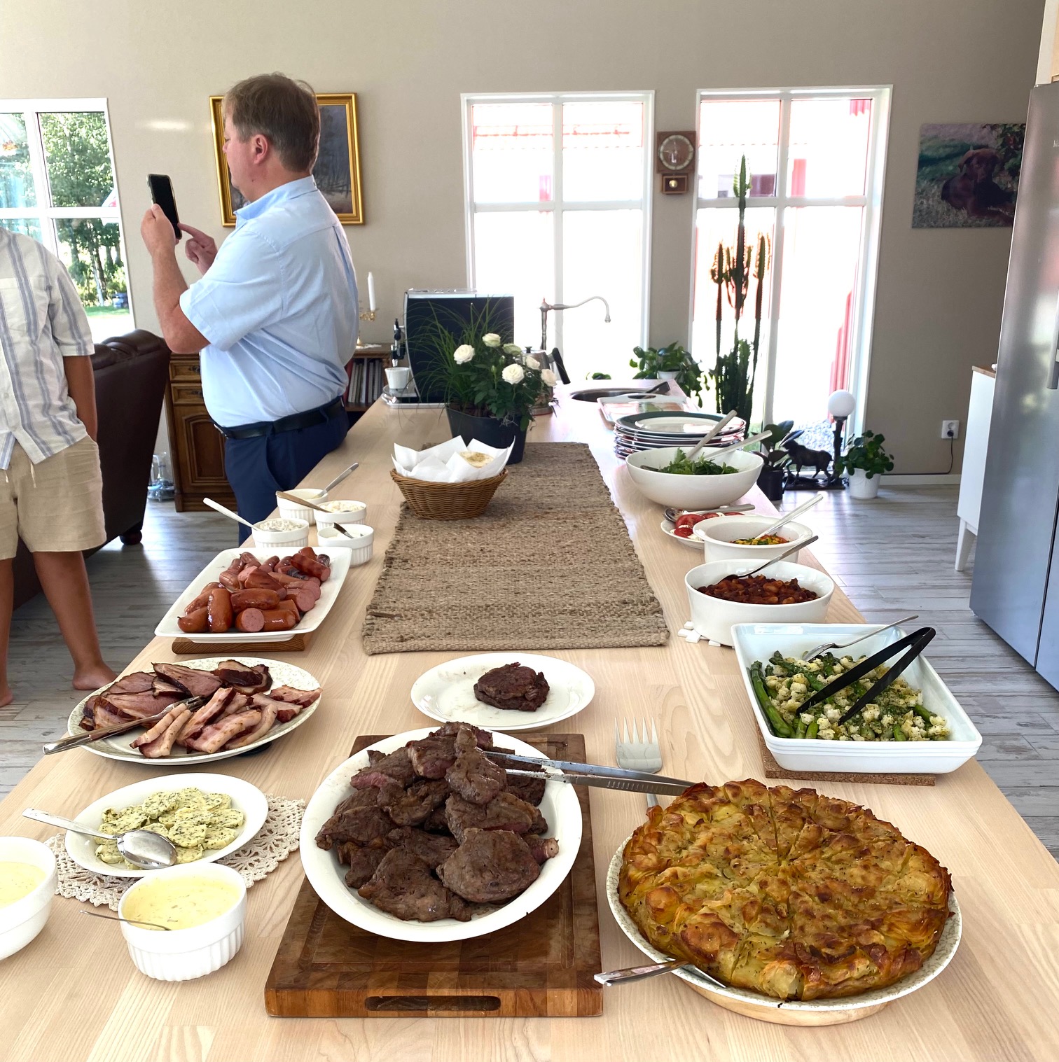Vilket fint sommarminne för alla. Och så mycket härligt att äta. En del var som konstverk. Jag bistod med kakor till kaffebordet och gjorde bl a Birgittas russinkakor och de blev populära. 40 gäster, det är fantastiskt att bara ha energi till det, jag blev lite matt när jag såg allt de planerade men det gick som en dans. Så härligt det var och ser ert fina med. Så roligt med fin trädgård att vara i.