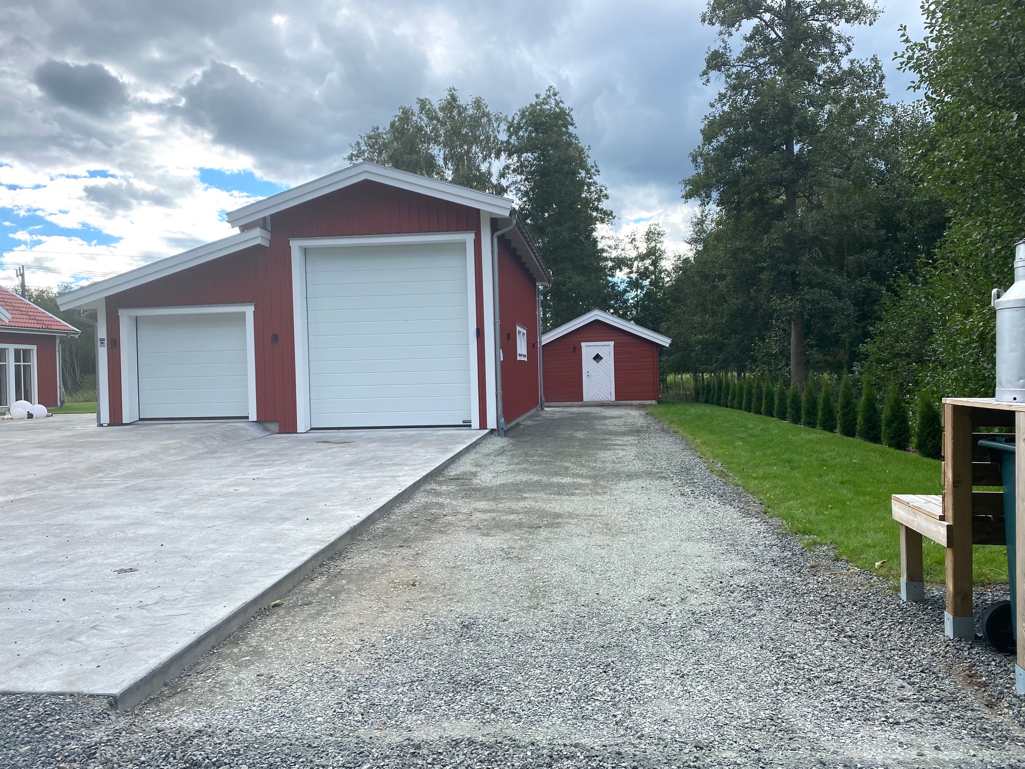 På infarten till vår friggebod där vi parkerar båten och släpkärran, växte det en massa ogräs, något som vi ogillar. Lika bra att ta tjuren vid hornen och lägga betong där också.