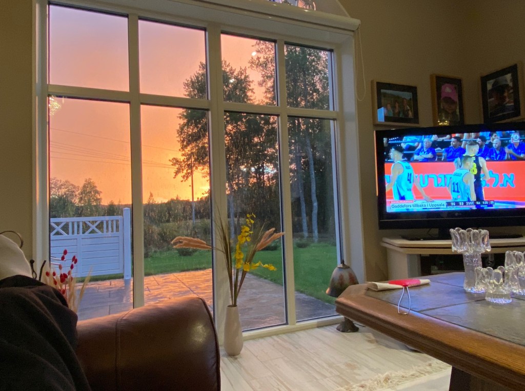 Enda platsen där jag kunde undgå solen in i dataskärmen var på vårt kontor. Då satte vi upp rullgardiner på utsatta lägen. Men solen är också vacker att se på.