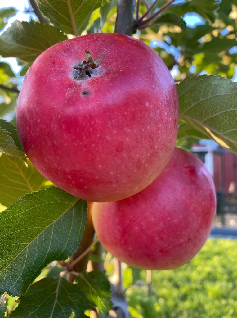 Äppelsorter är inte vår starkaste sida men det kanske vara Aroma. Oavsett sort är det en lycka när ett träd bär frukt för första gången (och nåde den fågel som är och hackar i dem!).