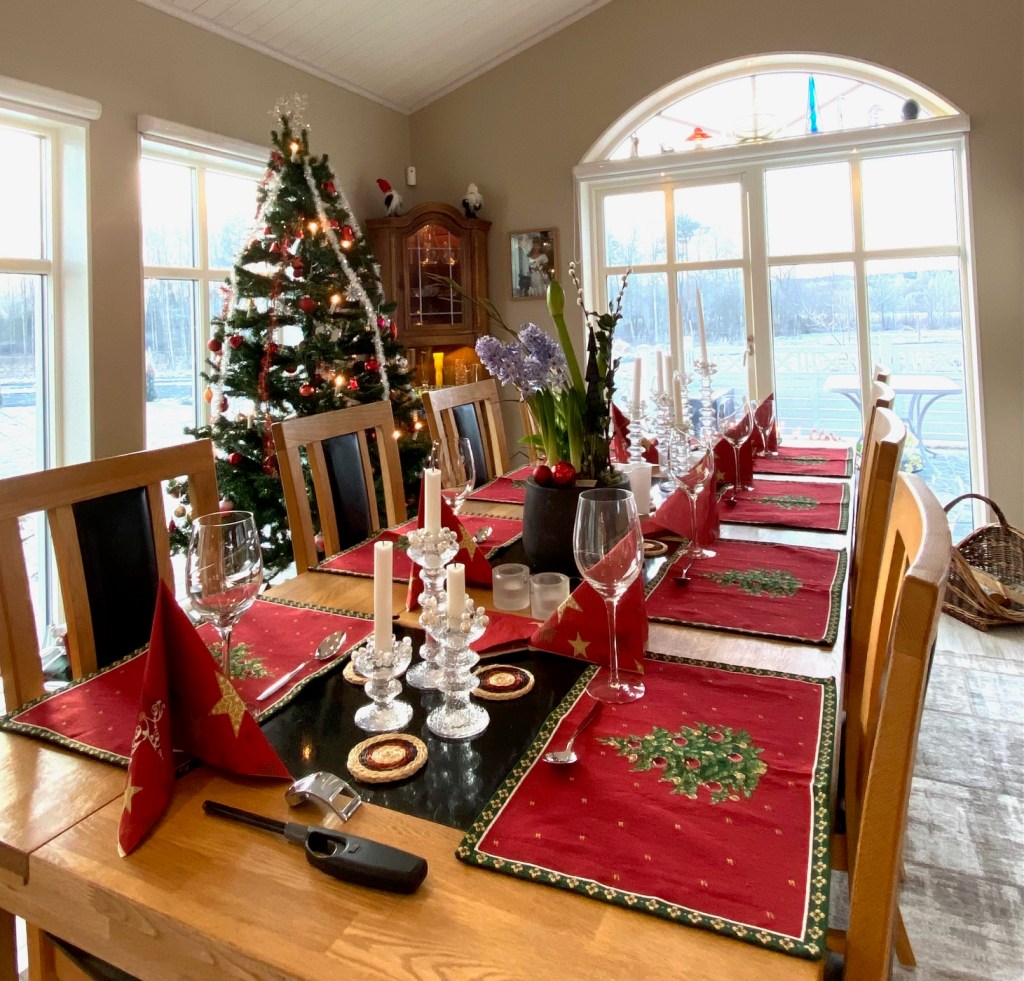 Vi firat också, gjorde mycket fint här hemma, sedan hos dotter om möjligt ännu vackrare och på julafton åkte vi alla till en slottsvistelse, jag tänkte innan, ska vi verkligen, men det blev fantastiskt. Fick sista rummen i en vacker svit, och det blev så bra.