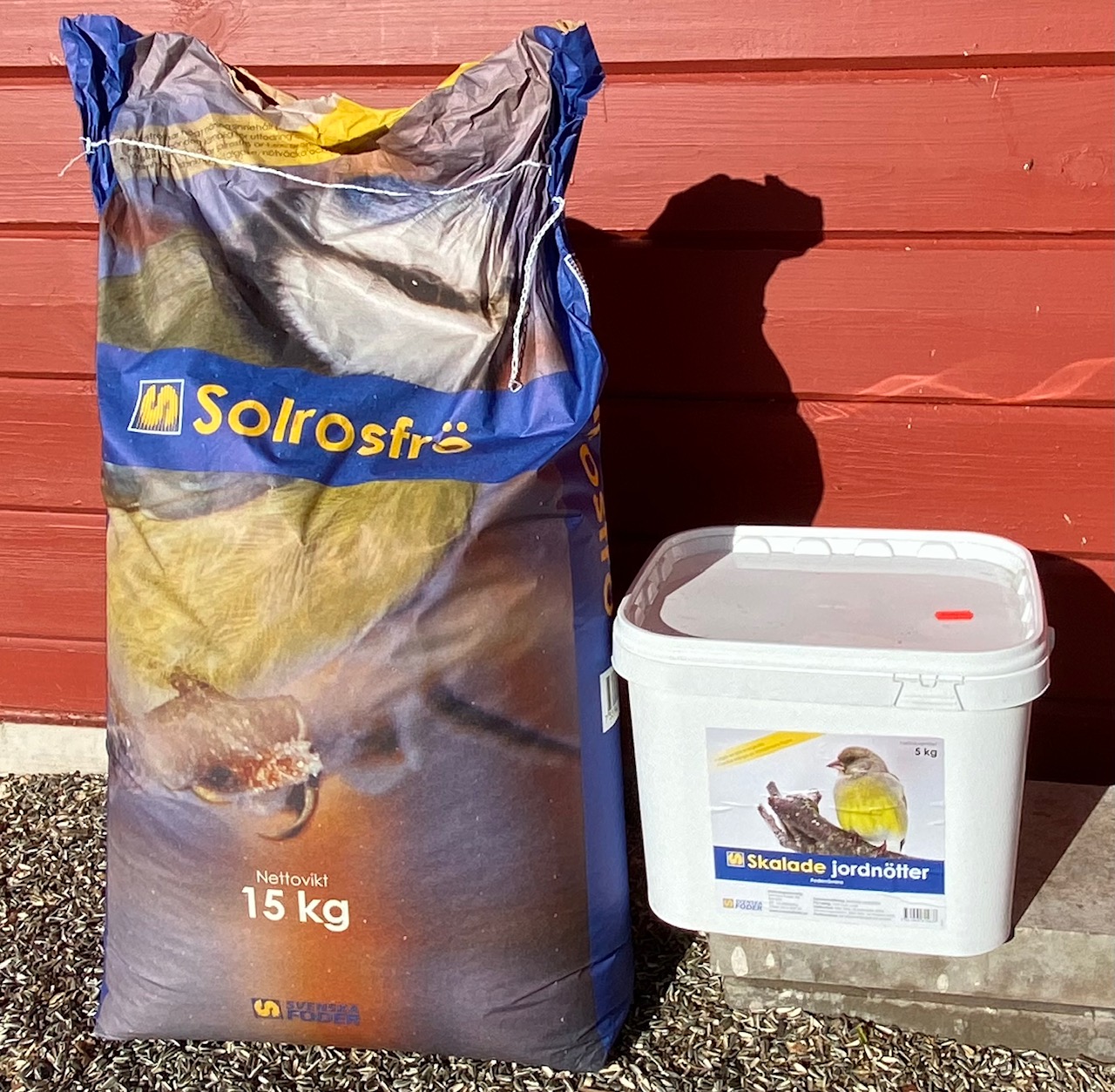 Sedan oktober månad har vi matat dem med 75 kg solrosfrö och 15 kg jordnötter, tillsammans 90 kg!