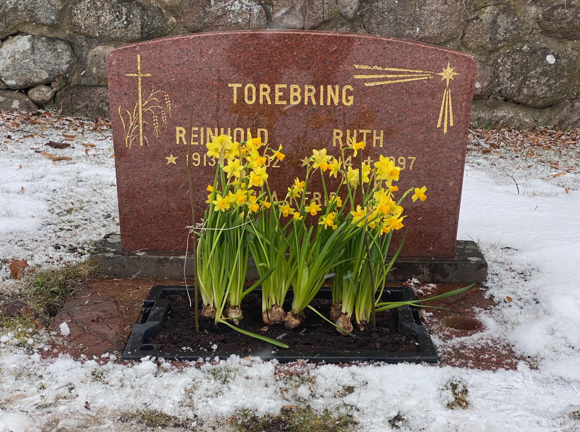 Jag ville vara ute i god tid med att göra påskfint på våra gravvårdar. I morgon eftermiddag har vi planerat att fara ut med bussen. När vi var på kyrkogårdarna var det så svinkallt, så jag sa till Birgitta: ”Vi stannar hemma!” ”Nej, nu kan vi inte vela mera, vi åker ut, sa Birgitta! Så blir det!