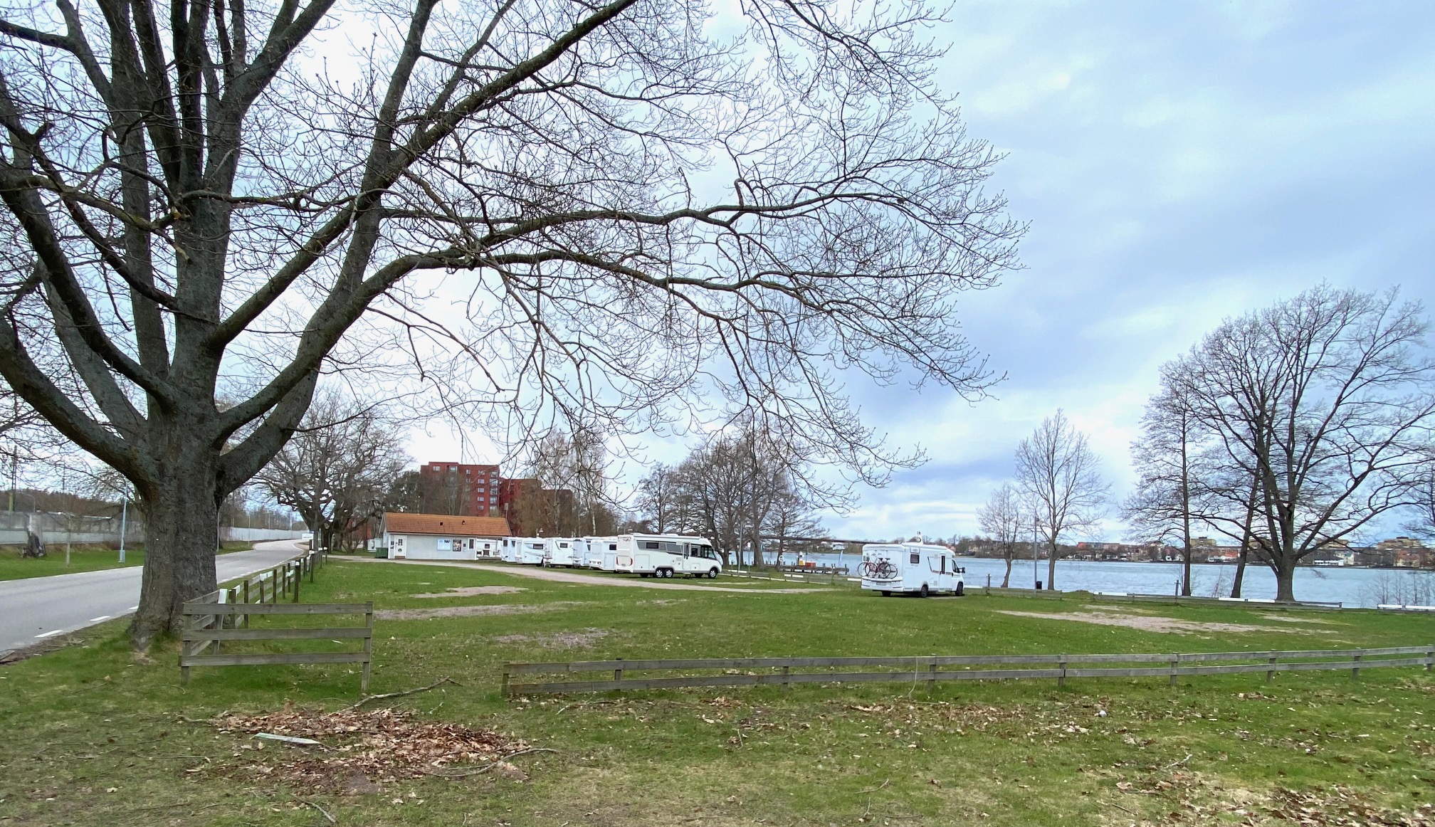 Vi letade efter en bra ställplats som inte kostar mer är vad vi har användning för. Här hittade vi vår nya favorit, Södra Alléns Ställplats, nära centrum. Kolla vilken bra plats vi fick också.