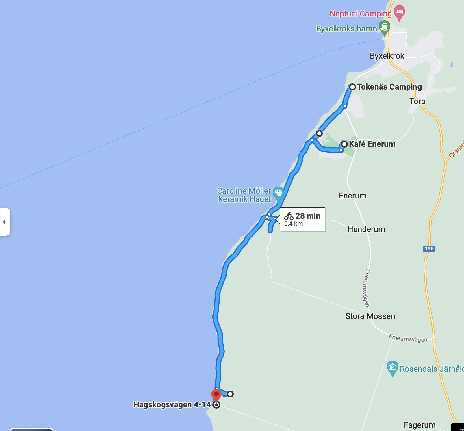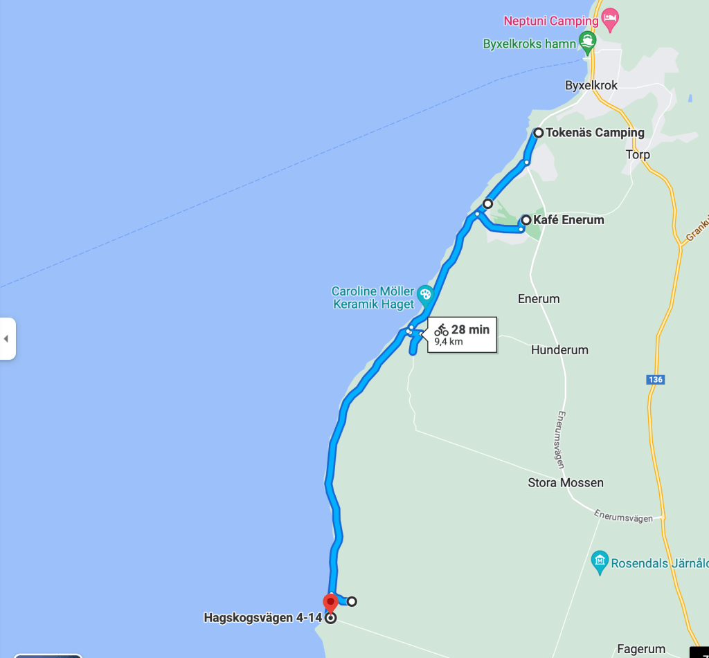 Nu för tiden kan en gammal ladugård inrymma precis vad som helst, som här Café Enerum samt även lokaler för en Golfklubb. Vi startade på vår fina camping i Tokenäs, sedan tog vi en god macka före dagens cykeltur på Caféet i Enerum, innan vi cyklade Kustvägen! Vilken fantastisk cykeltur! Rekommenderas!