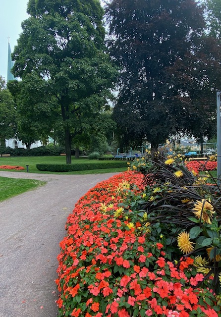 Sedan gick vi ned till stadsparken och bara njöt av det fina vädret, all grönska, de mäktiga träden och alla vackra blommor.