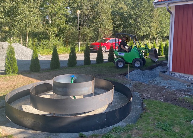 Det var ordentlig plåt i den rondellen, rostar inte sönder på på många år. Kommer att gå åt många växter att fylla den med. Du siter inte stilla ännu ett projekt, god lycka med det.