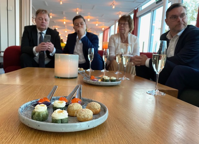 Klockan 7 på fredagsmorgonen var Niklas med familj på plats med tårta, kaffe & tebricka på rummet. Birgitta & jag var med på FaceTime. Foton från Gothia Hotel, Spa och hummerfisket, är tagna av Niklas, Carina och Mikael.