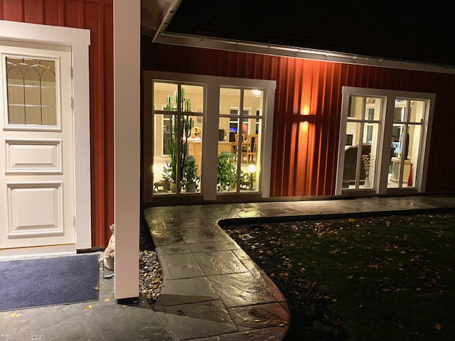 Mörkret kom verkligen fort, glömt det med så otroligt mörkt i oktober. Och kallt. Men ljusslingor och ljus ”värmer” och gyllene löv, de sitter länge här.