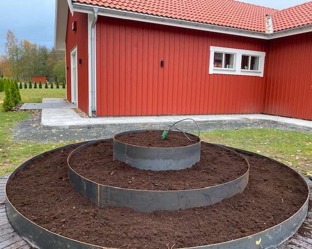 De nya planteringsrondellerna blir säkert jättefina när växterna kommer på plats och det mesta också i en bekväm arbetshöjd. Då får vi bara hoppas att växterna hinner komma på plats innan frosten men just nu ser det väl ut att hålla sig på + ett tag.