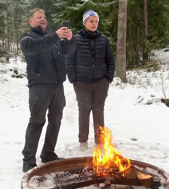 Linus är en riktig grillmästare, han älskar grillad korv, helst ute i skogen som nu. Trots alla mina år i skogen och allt slit som jag har lagt ned där, så älskar jag fortfarande skogen.