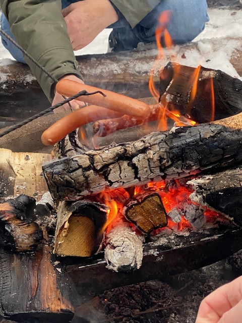 Visst är det trevligt med utflykter i naturen med korv grillning!