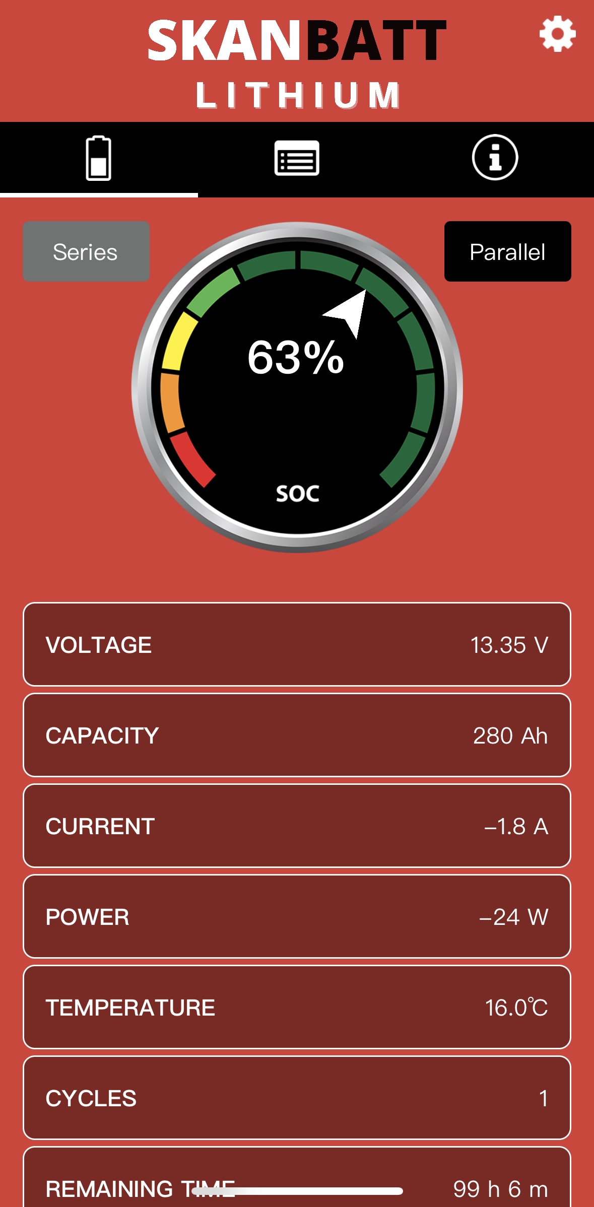 Jag har en app i mobilen för att se status på batterierna