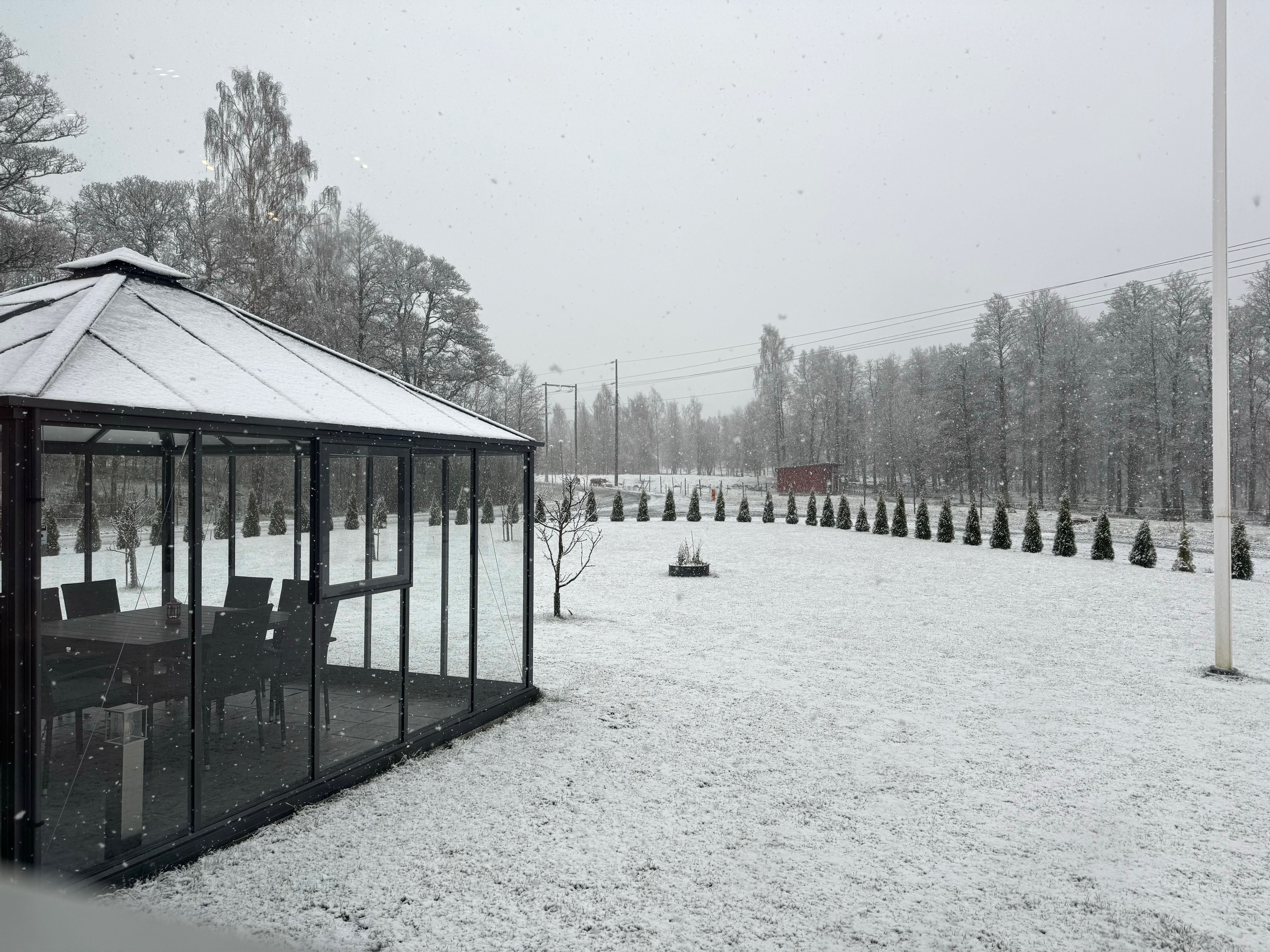 Igår vaknade vi åter till snöoväder men den här gången blev det inget vitt täcke hos oss och i morse när vi var på väg hem från en övernattning var det dags igen. Enda fördelen tycker vi är att våren med sina blommor inte försvinner i ett nafs utan att vi förhoppningsvis kan få njuta utav sippor och annat lite längre.