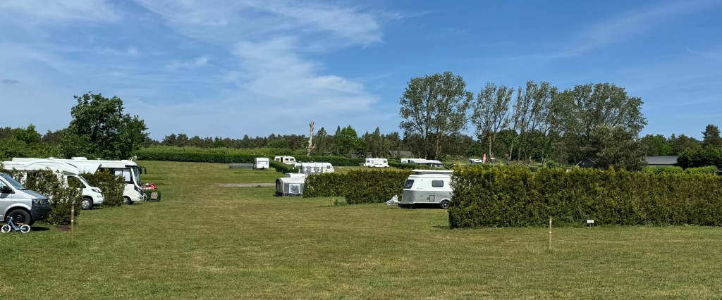 Det stod en handfull husbilar vid stranden i Vitemölla. Vi har det bättre på gröngräset i Ängdala