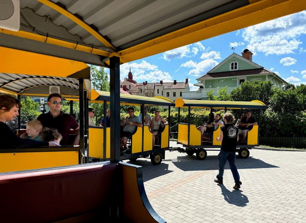 Vi satte oss på Tuff tåget och åkte med på en riktig Kul-Tur på en halvtimma om stadens historia, genom smala gränder i hela stan … Jag fattar inte hur han som körde, fick med sista vagnen genom alla trånga passage.