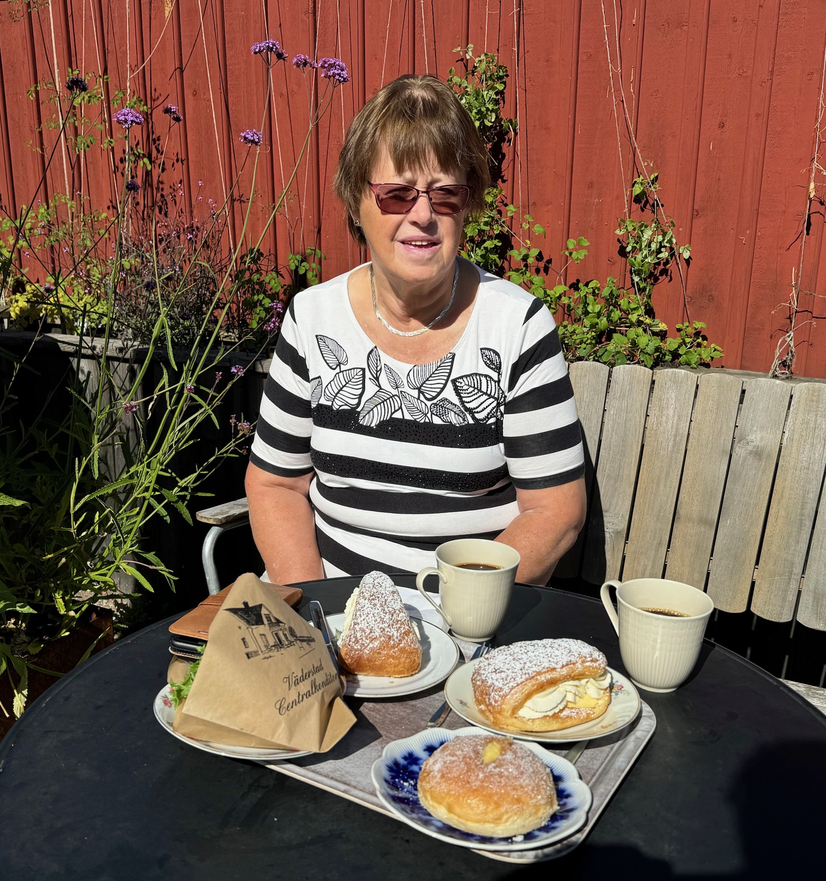 Vi stortrivs redan i vårt nya liv utan husbil. Hoppas att vi säljer den fort. Nu har vi redan börjat tala om längre resor åt olika håll, fast utan husbil. Efter frukost föreslog jag för Birgitta … vi åker till Väderstad och fikar. En timma senare var vi där …