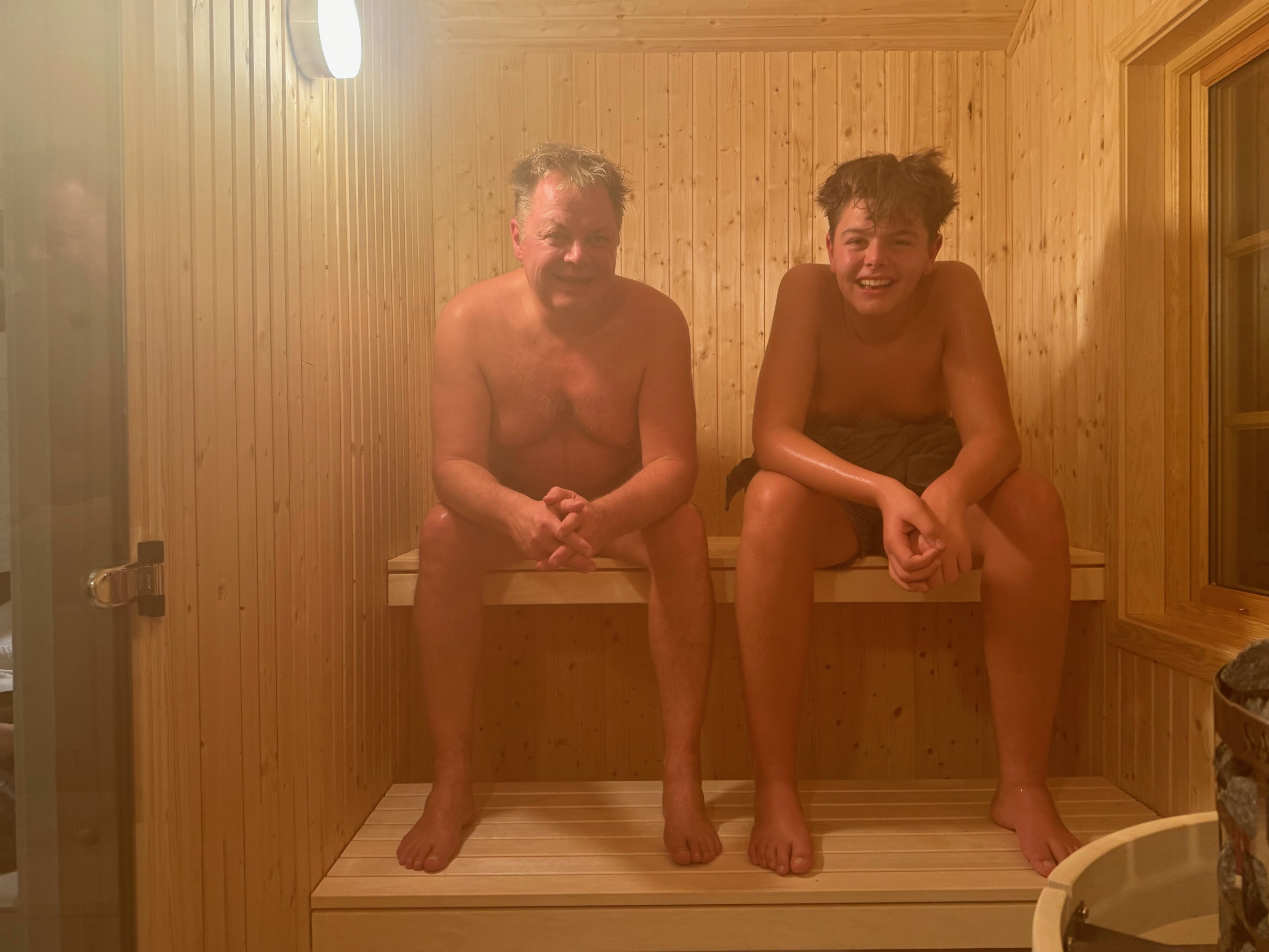 vid deras sommar ställe med en vedeldad bastu och sedan