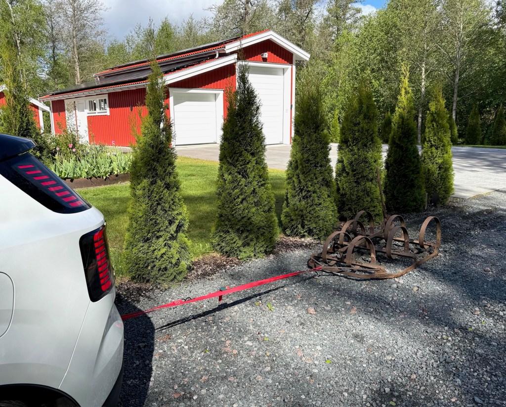 Först tänkte jag att ytan är hård och harven går inte ned men icke, det gick hur fint som helst. Det gick åt bara 1 % av batteriet i bilen innan vi var klara.