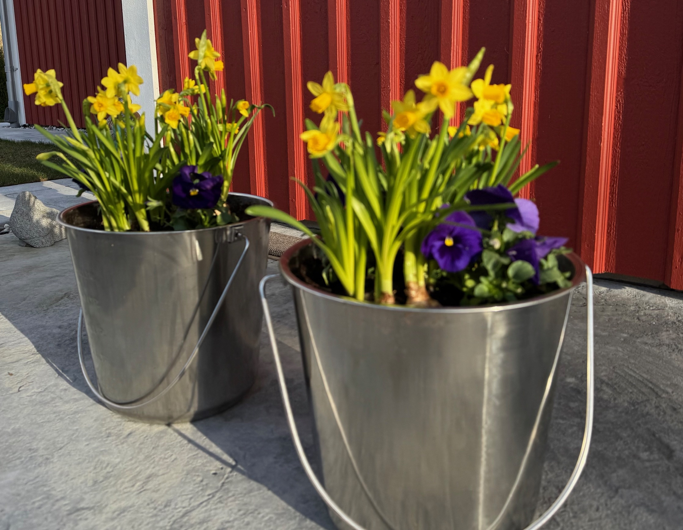 Varför skall man ha kossor, när man har mjölkat dem, sparkar de ut all mjölk … detta sa vår granne i Björnaryd på 60 talet. Därför har vi planterat blommor i mjölkhinkarna.