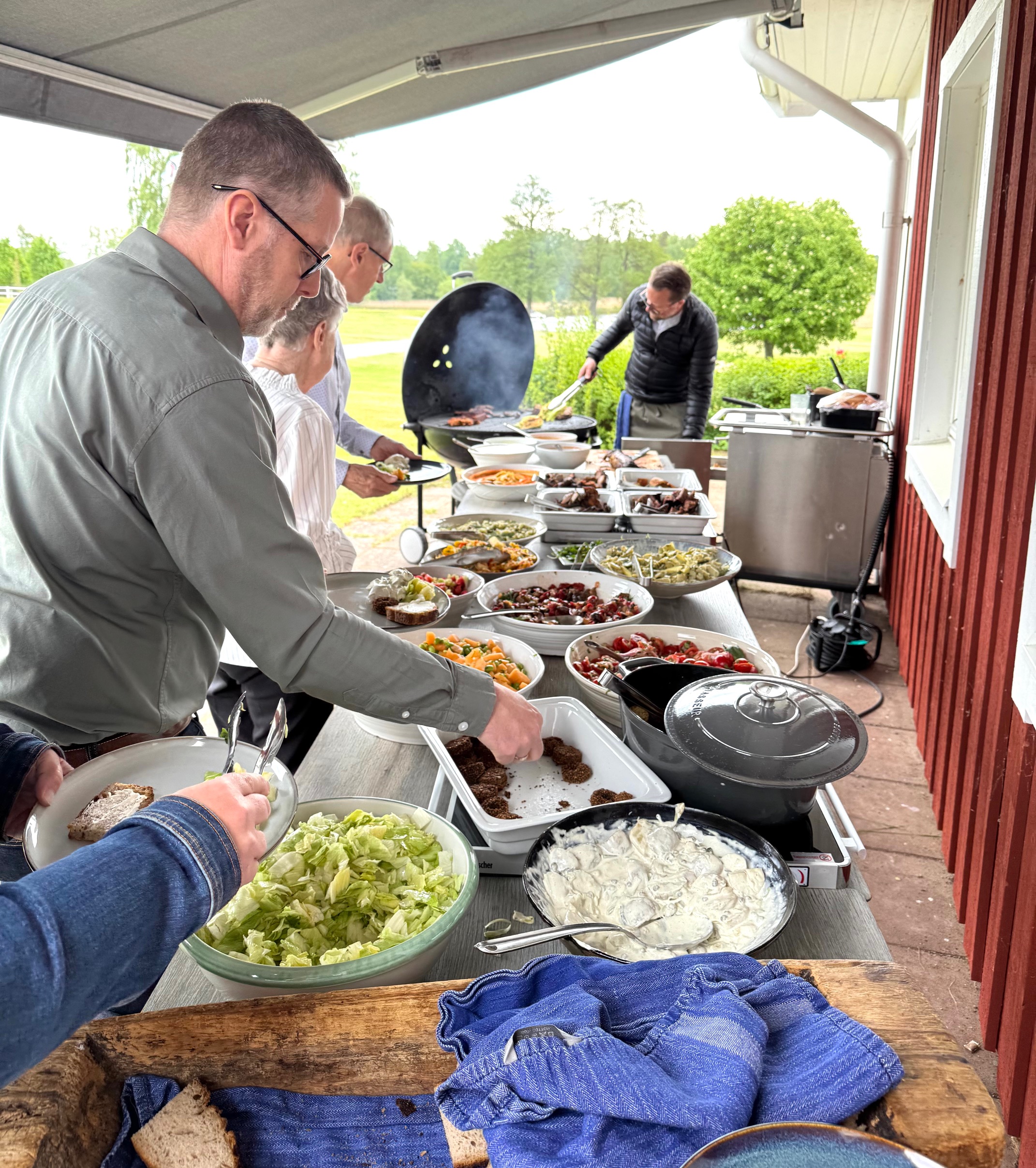 Mors dag firande på Norraby Golfkrog, Tranås, detta var Birgittas eget förslag och hon bokade tid och plats. Vilken fest det blev med Grilbuffén ute i det fria, de gröna banorna utanför fönstret och en vik av sjön Sommen strax intill. Närmare en golfbana än så här, kommer jag nog aldrig…