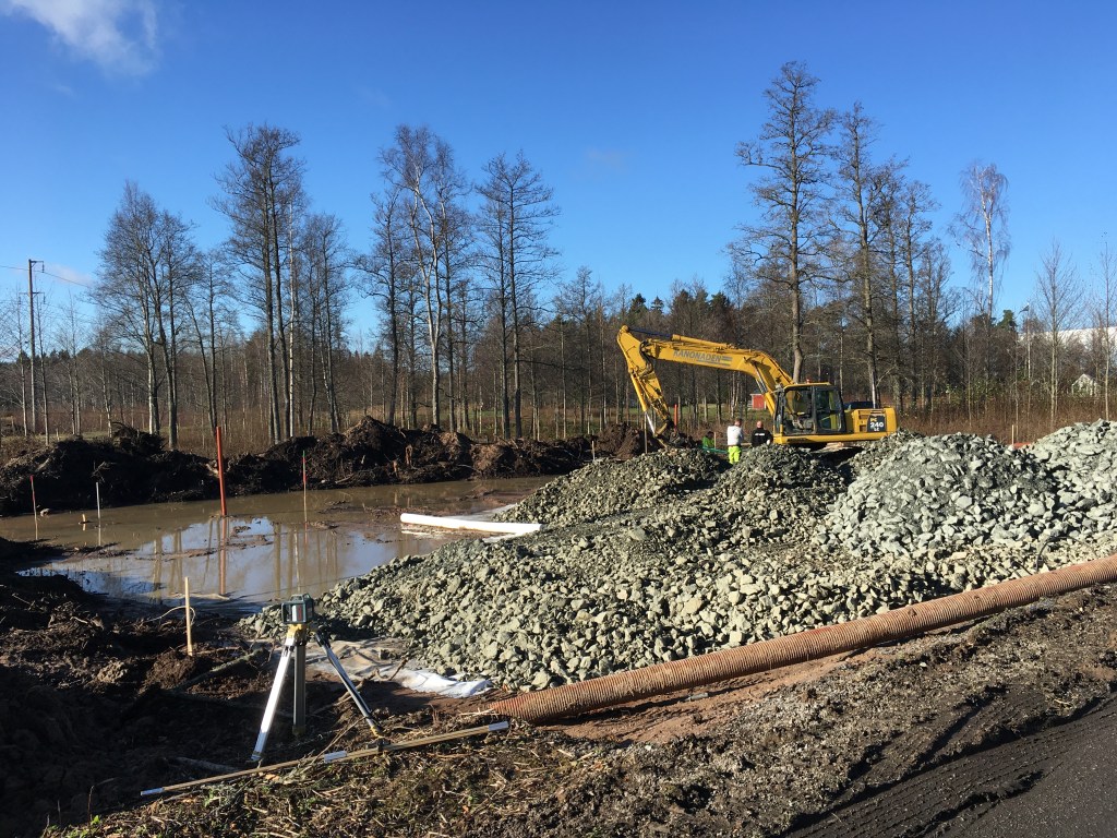 Tomten är en gammal sjöbotten sedan 1860 då Anebysjön sänktes ett par meter. Det blev höga tomtkostnader, men vi älskar tomten och vi är så Tacksamma över den.