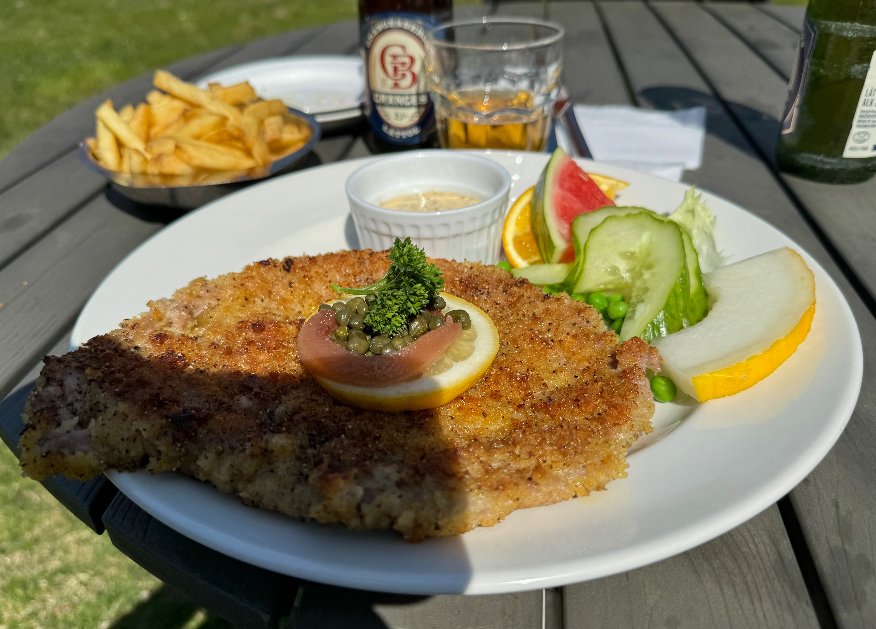 Ett misslyckat foto på en utsökt god WienerschnitzelTorpöns Färjeläge
