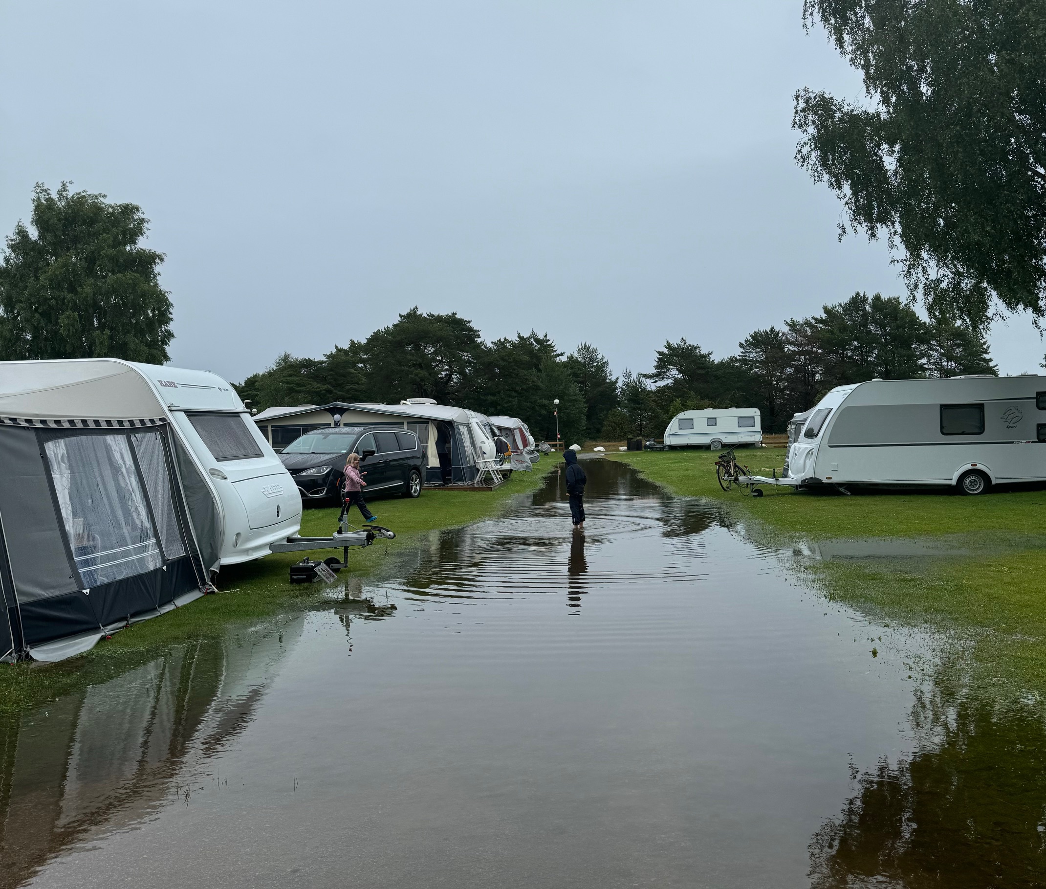 Jag sa till Birgitta tidigare i veckan, titta på hur de anlagt platserna, vattnet kommer att rinna ut på gatan, i stället för in i förtälten som det oftast gör annans. Här är det genomtänkt från början.