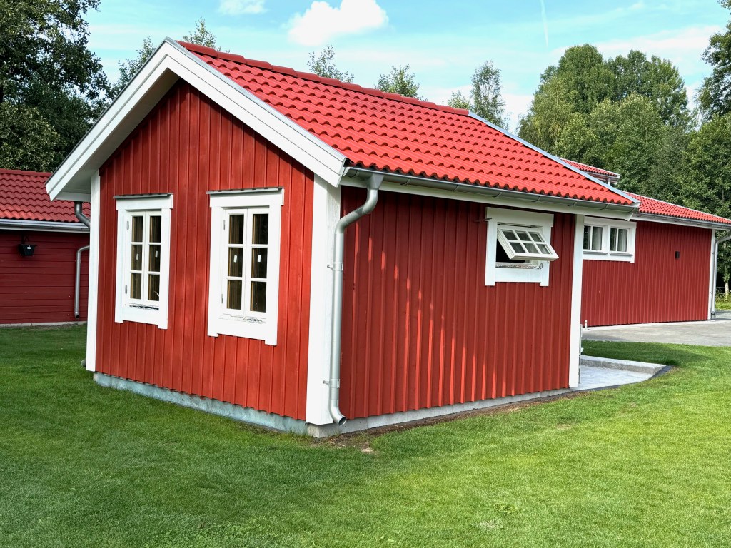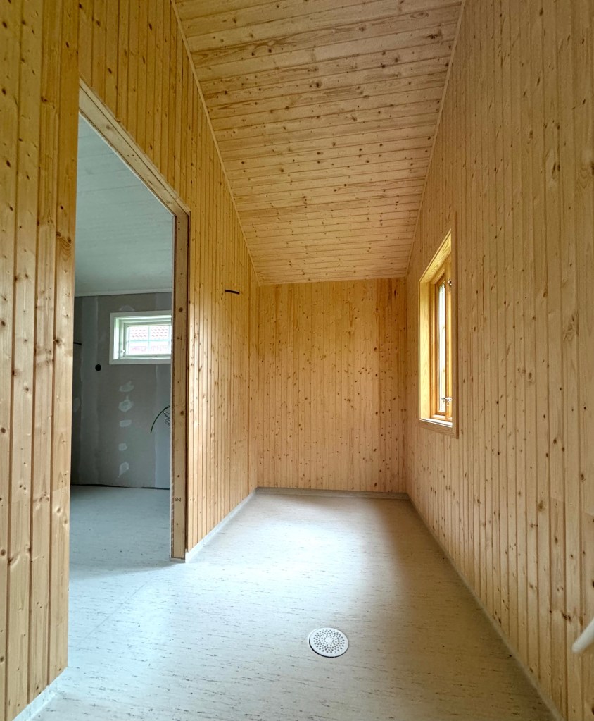 När Niklas och jag var i Göteborg, blev vår ”Drängstuga & bastu” helt klar utvändigt. Vår målare drog sista penseldraget, elektrikern drog fram all el och vvs drag fram vatten och avlopp, allt gjordes när vi var borta. Detta måste vara Byns finaste drängstuga med bastu, så fantastiskt fint det blev. Tack till Anders hjälpt mig med att rita det så bra, tack till alla som har grävt, byggt och målat. Jag är stolt över er insats, ni är Mästarnas Mästare. Nu fortsätter våra fantastiska snickare från JL Bygg i Eksjö, med att isolera insidan, spika panel och även gipsa. När vi är hemma igen, är det dags att lägga golvvärme och sätta våtrumsväggar i dusch och toalett.