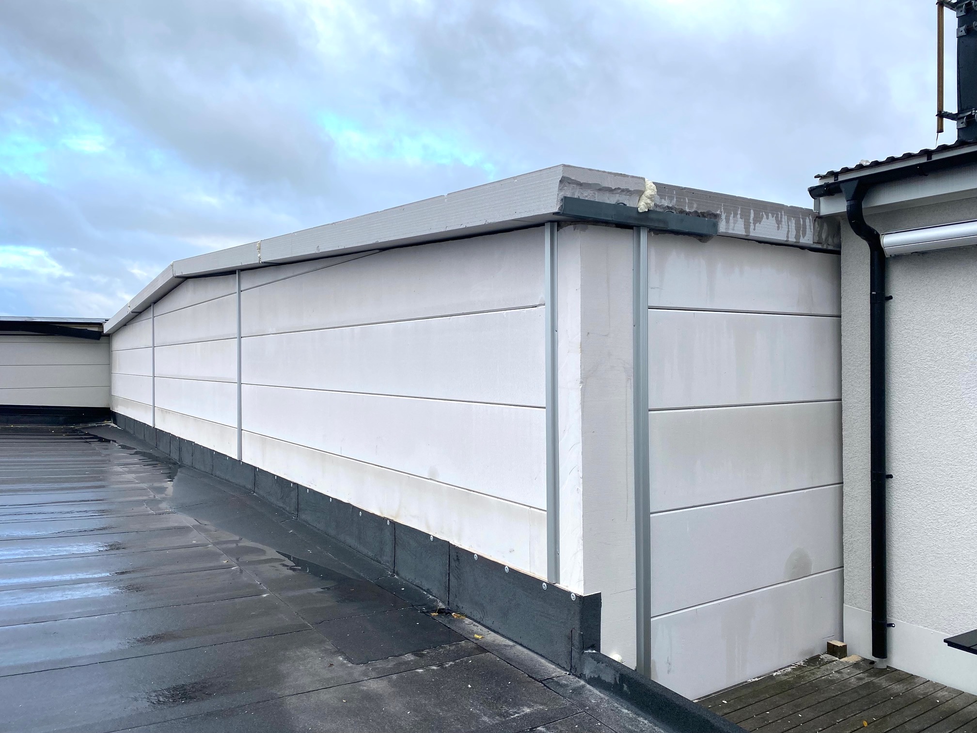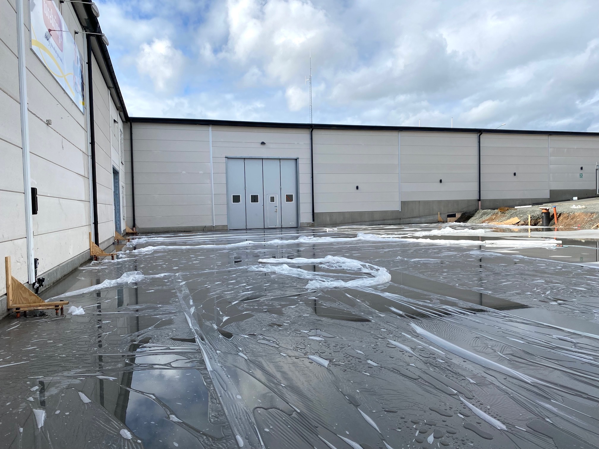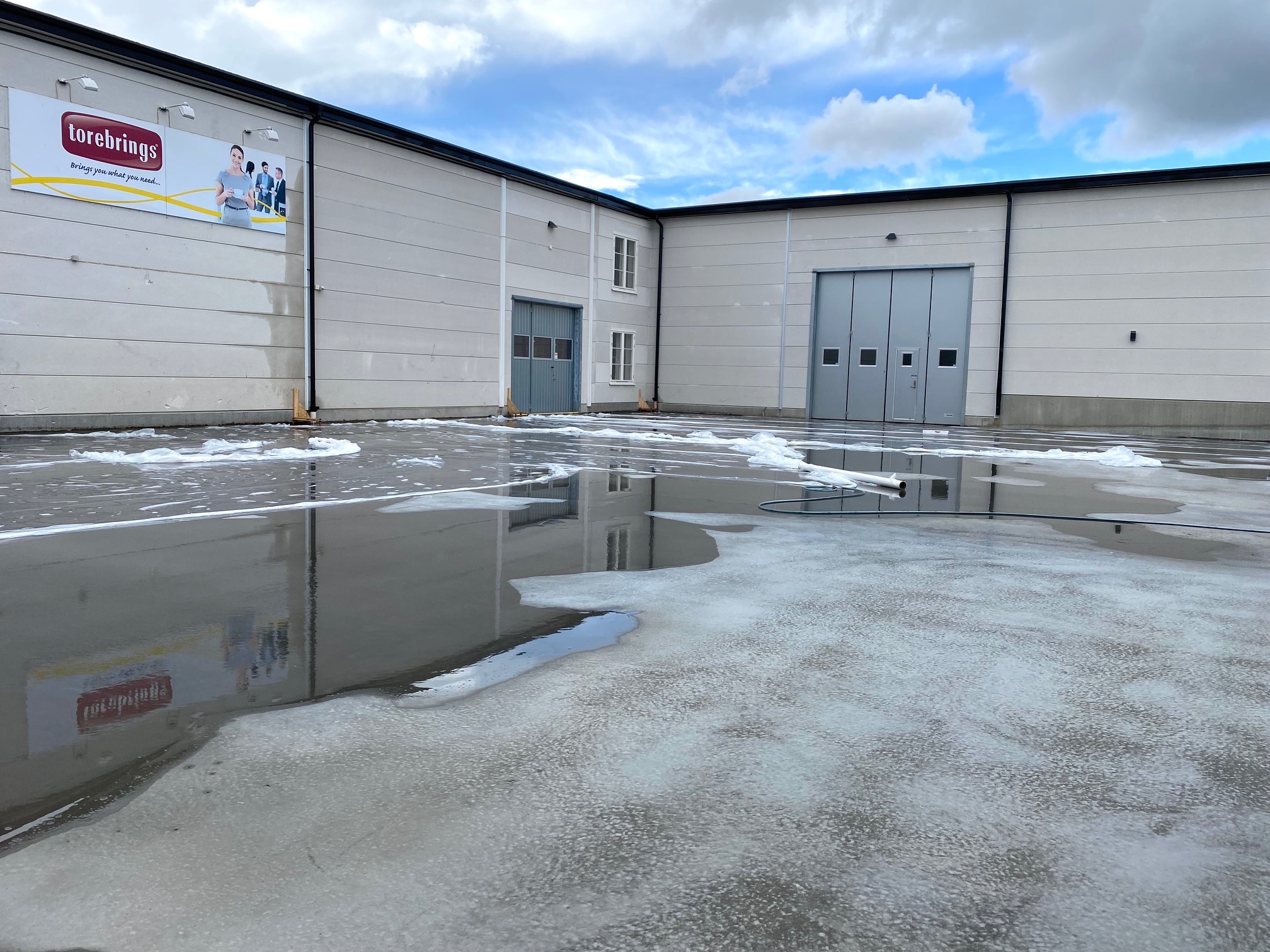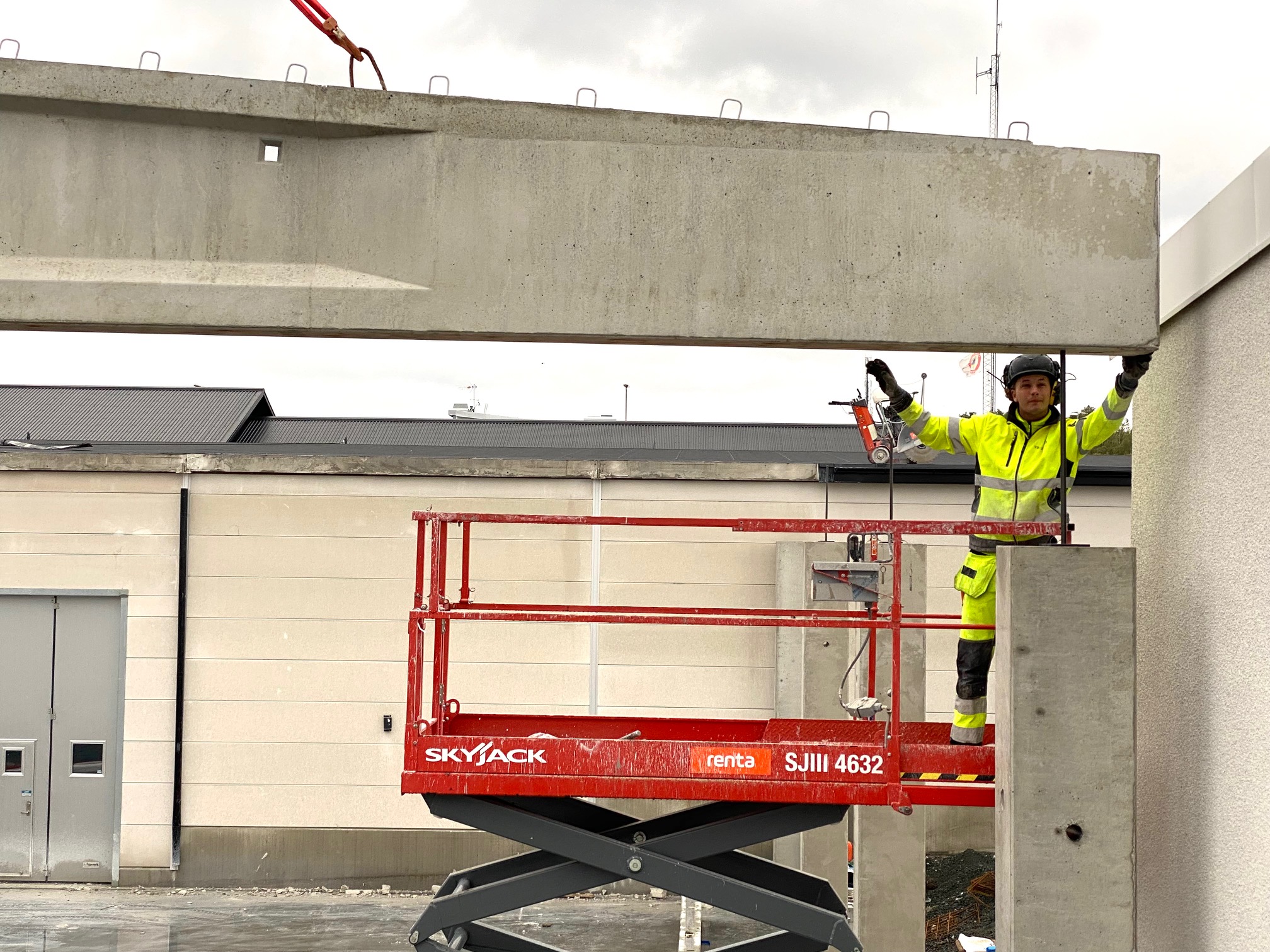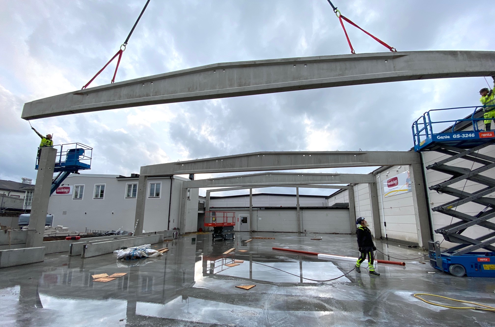 Jag tog mod till mig och klättrade upp på taket, dock utan hjälm som statsministern brukar ta på sig vid industribesök. Idag är det minst sagt full aktivitet på vårt bygge. Snickare, plåtslagare, takläggare och en kranbil. Kändes nästan lite otroligt att se ut över 5000 m2 tak där uppe. Jag började ju hemma i villans garage 1976 …