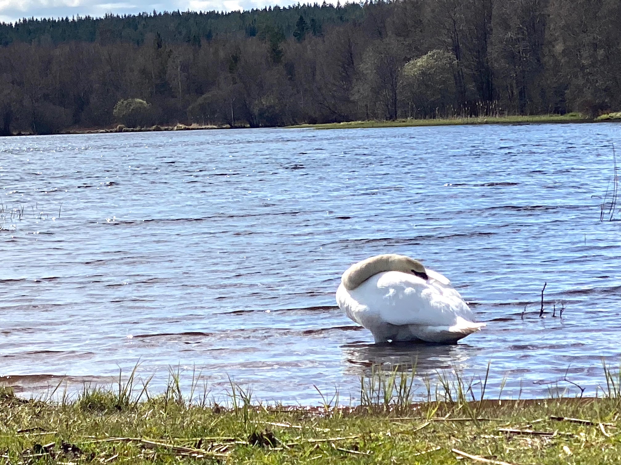 Vi sitter hemma i vardagsrummet och beundrar denna vackra björk. Nu har jag förevigat den. Vi fick dessutom en trevlig promenad runt södra delen av Anebysjön.