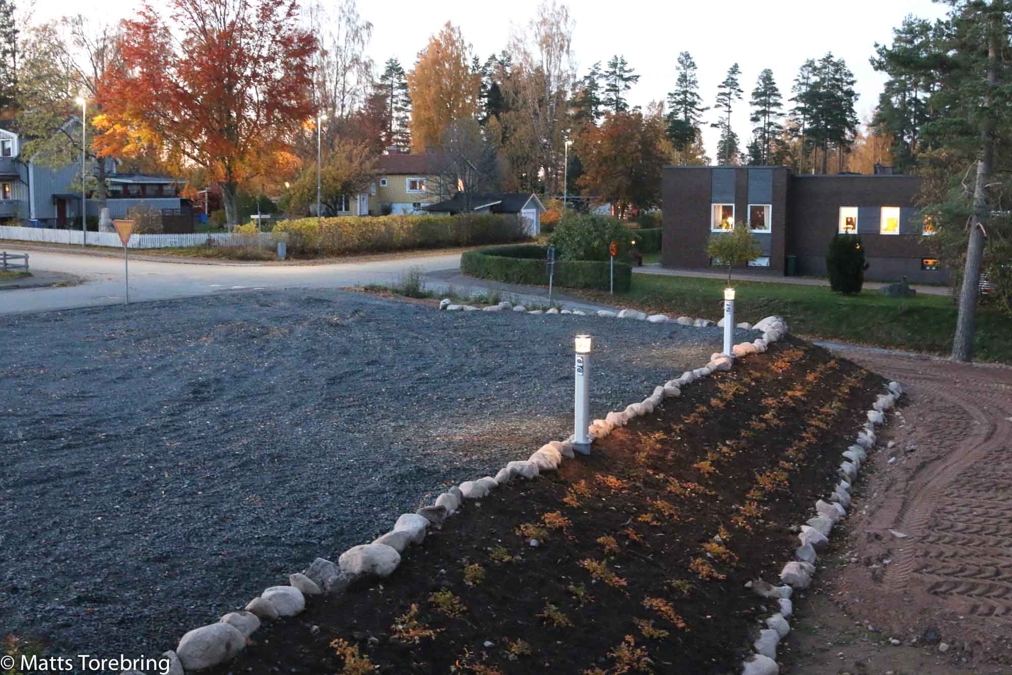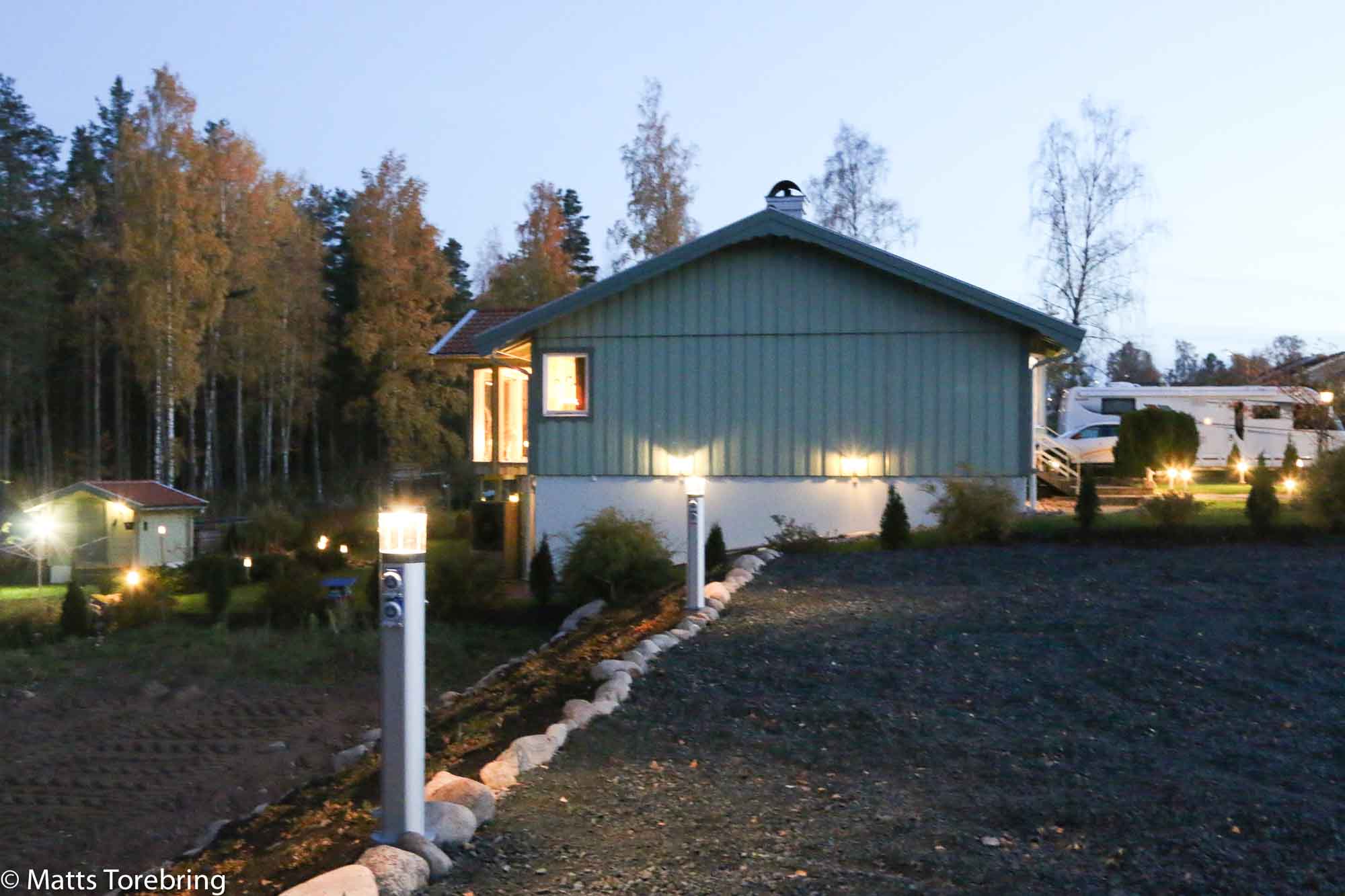 Vi som har stora skogen till närmsta granne på baksidan, måste göra allt vi kan, för att hjälpa månen att lysa upp. Så sagt och gjort, flera strälkastare kom upp. Jag har två till att sätta upp i nya ”Trädgården”, så snart jag schaktat färdigt för i år. Jag är inte speciellt förtjust i vintertiden och de mörka kvällarna som börjar nu.