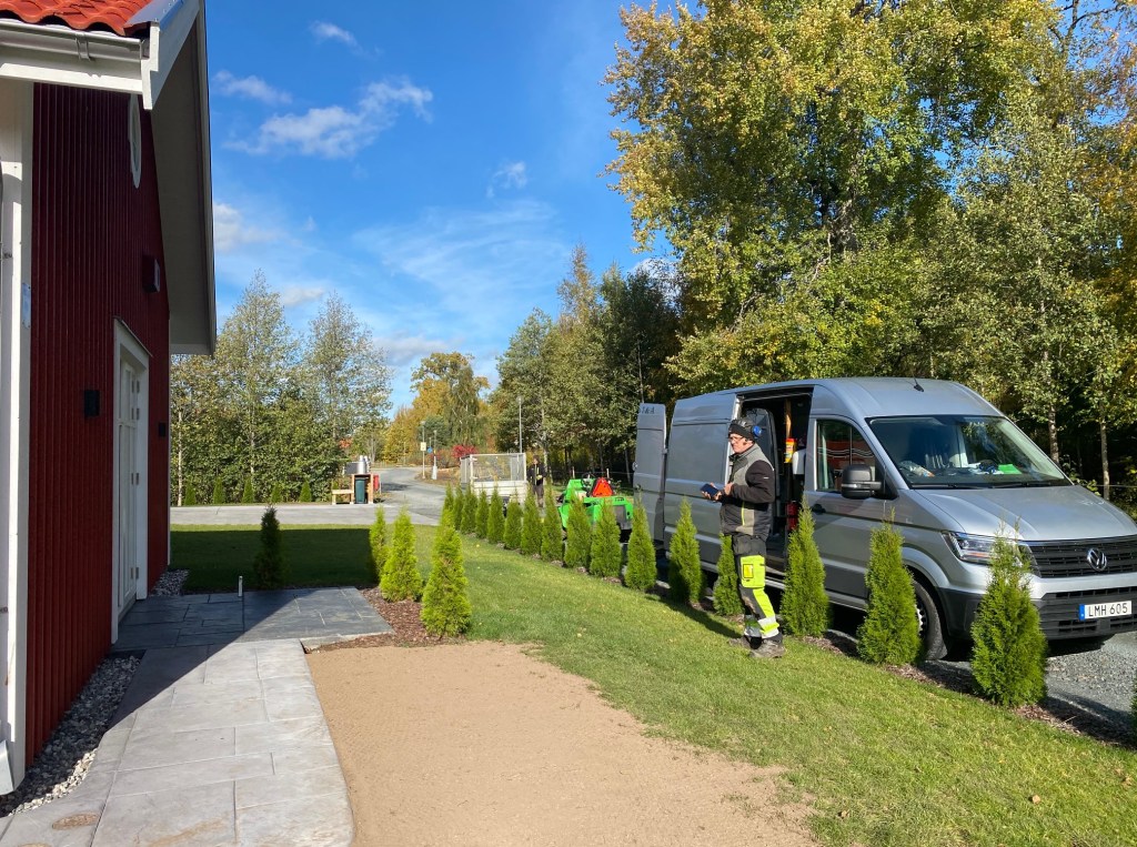 I år valde vi att Toreman får stå på vinterförvaring på ett Automover hotell. Till våren hämtar vi den fulladdad och nyservad. Eftersom vi har varit inne med grävmaskiner och traktorer på gräsmattan, har vi också fått laga begränsningslinan på ett par ställen. Nu är det också fixat och det lyser grön lampa igen. Så skönt att inte tänka på detta i vinter.