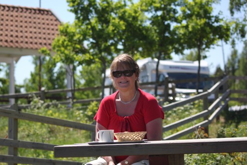 Nu har vi invigt ”nya” utemöblerna, även om det blev lite i kyligaste laget. Jag hade räknat med betydligt mera plusgrader idag ute än vad det blev.