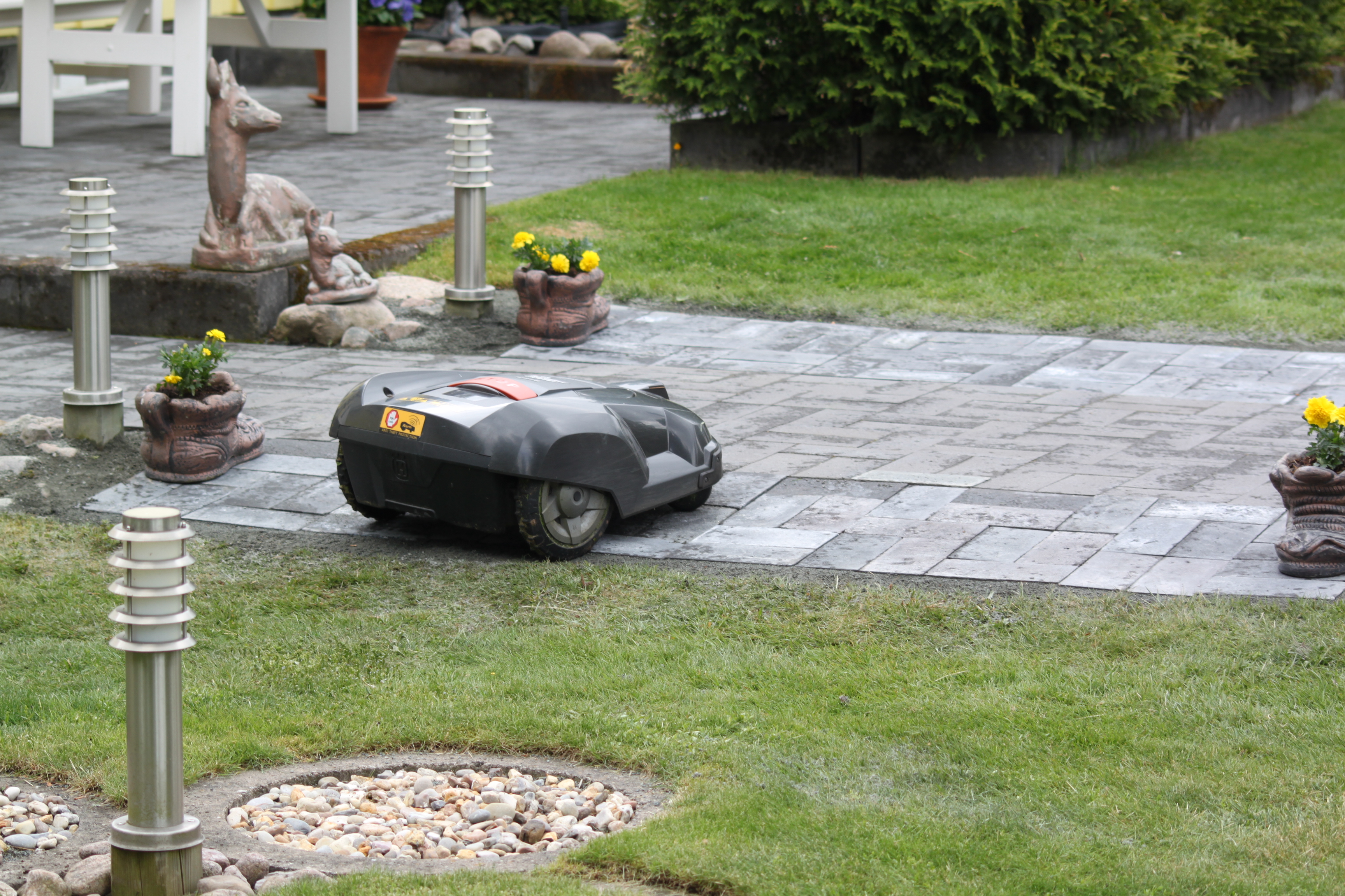 Förra våren fick jag så bråttom att gräva ned alla kablar i marken till ”Fino”. På ett ställe måste den gå över entrén. Där har den tidigare fått ett övergångsställe som passar i höjder men då har den gått på en bädd av stenmjöl på sidorna om entrén.