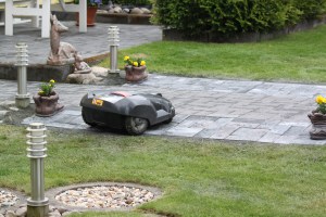 Nu har den fått ett bättre övergångsställe med lagda plattor. Nu behöver jag inte sopa stenmjöl längre efter hjulen när den rullat över entrén. Dessutom är hela tomten nu handikappanpassad på samtliga nivåer.
